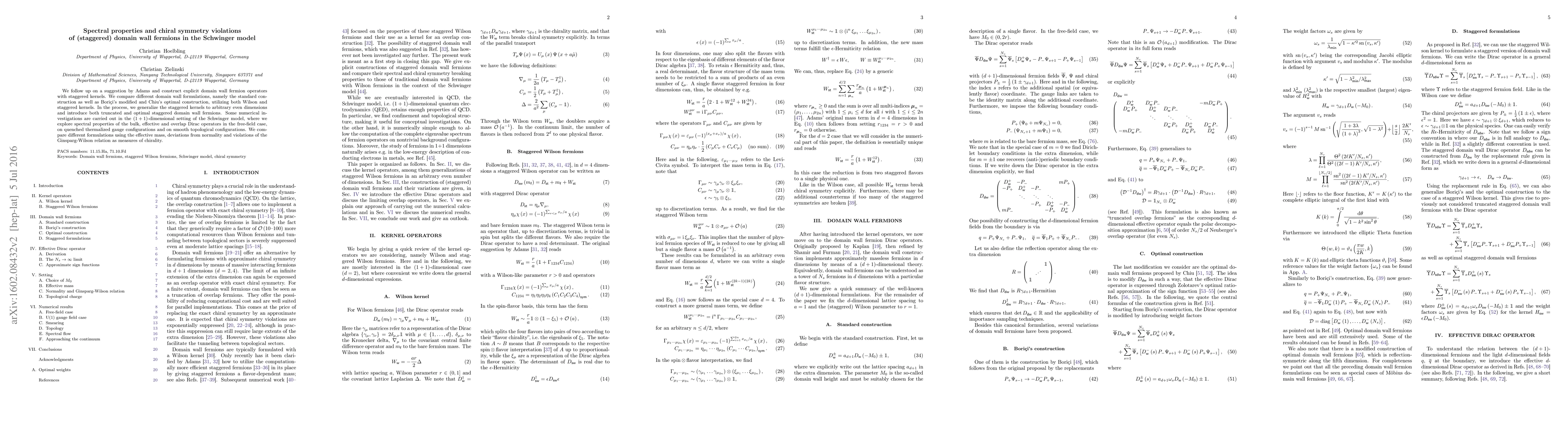This paper constructs explicit staggered domain wall fermion operators and compares various formulations, including Borici's and Chiu's constructions, in the (1+1)-dimensional Schwinger model. It investigates spectral properties and chiral symmetry violations, using measures like effective mass and deviations from normality.