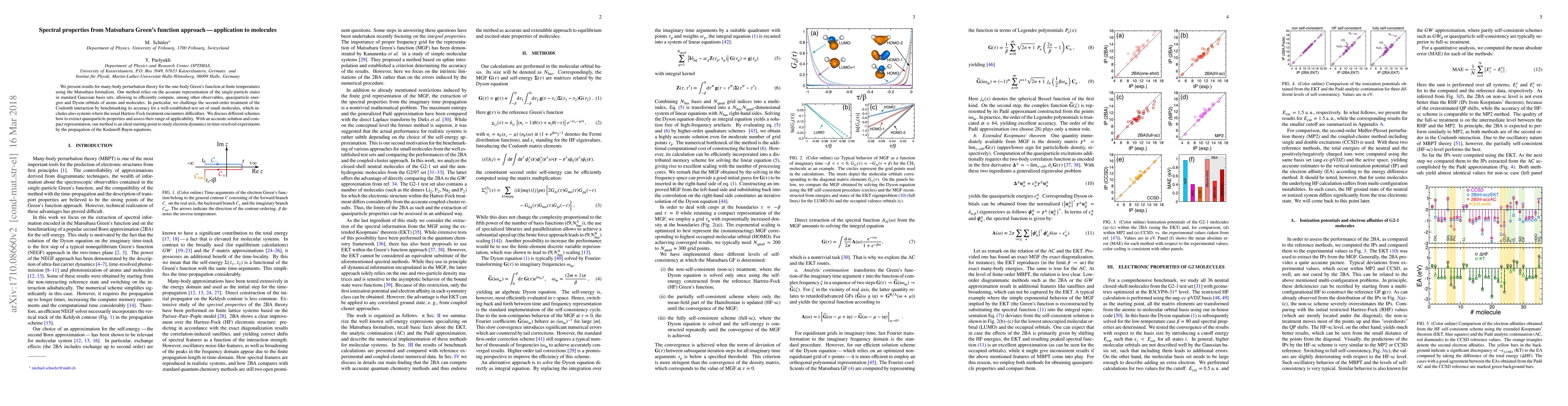 We present results for many-body perturbation theory for the one-body Green's function at finite temperatures using the Matsubara formalism. Our method relies on the accurate representation of the single-particle states in standard Gaussian basis sets, allowing to efficiently compute, among other observables, quasiparticle energies and Dyson orbitals of atoms and molecules. In particular, we challenge the second-order treatment of the Coulomb interaction by benchmarking its accuracy for a well-established test set of small molecules, which includes also systems where the usual Hartree-Fock treatment encounters difficulties. We discuss different schemes how to extract quasiparticle properties and assess their range of applicability. With an accurate solution and compact representation, our method is an ideal starting point to study electron dynamics in time-resolved experiments by the propagation of the Kadanoff-Baym equations.