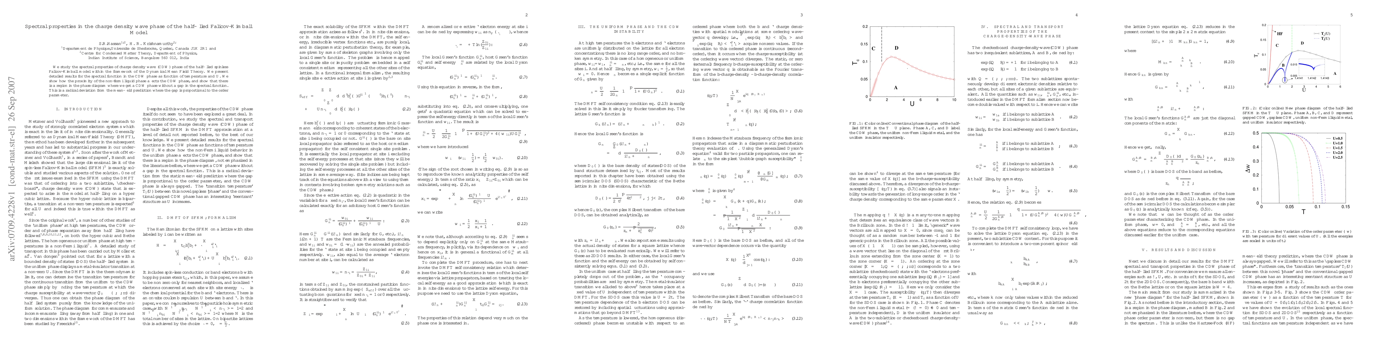 The study reveals spectral properties in the charge density wave phase of the half-filled Falicov-Kimball model using Dynamical Mean Field Theory, showing a CDW phase without a spectral gap despite proximity to a non-Fermi liquid phase, contrary to mean-field predictions.