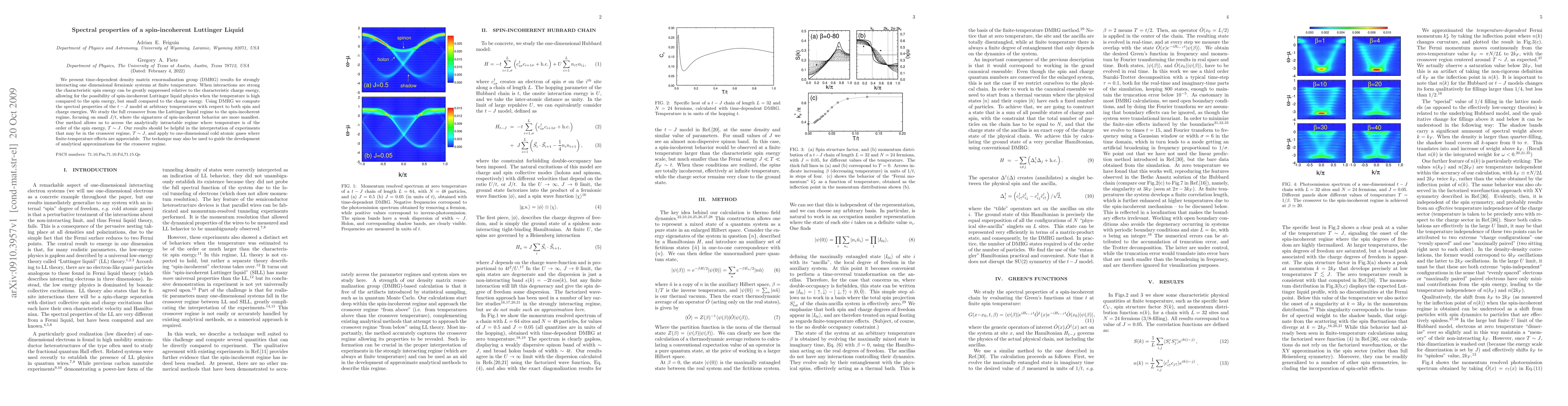 This paper uses time-dependent density matrix renormalization group (DMRG) to study the spectral properties of a spin-incoherent Luttinger liquid at finite temperatures. It explores the crossover from Luttinger liquid to spin-incoherent behavior in the $t-J$ model, particularly at small $J/t$, providing insights into the regime where temperature is comparable to the spin energy.