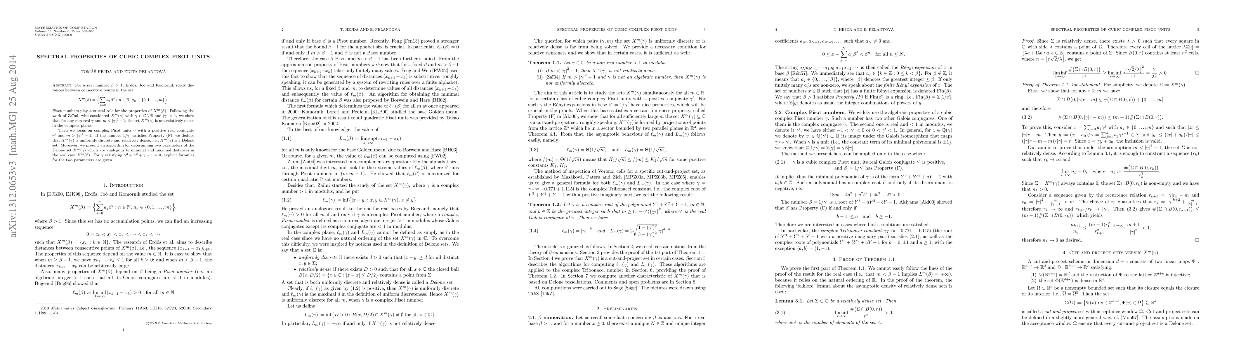 This research paper explores the spectral properties of complex cubic Pisot units, focusing on the set X^m(γ). It demonstrates that for non-real γ with m > |γ|^2 - 1, and under certain conditions on 1/γ', the set X^m(γ) forms a Delone set, exhibiting uniform discreteness and relative density in the complex plane. The paper also presents an algorithm to determine parameters akin to minimal and maximal distances in real cases, with explicit formulas provided for γ satisfying γ^3 + γ^2 + γ - 1 = 0.