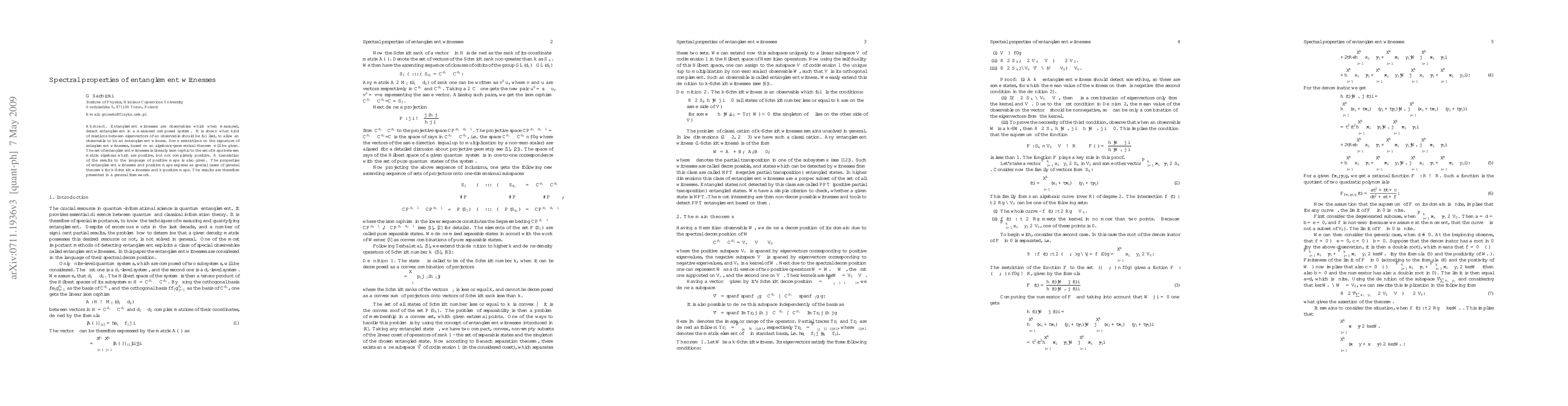 Entanglement witnesses are observables which when measured, detect entanglement in a measured composed system. It is shown what kind of relations between eigenvectors of an observable should be fulfilled, to allow an observable to be an entanglement witness. Some restrictions on the signature of entaglement witnesses, based on an algebraic-geometrical theorem will be given. The set of entanglement witnesses is linearly isomorphic to the set of maps between matrix algebras which are positive, but not completely positive. A translation of the results to the language of positive maps is also given. The properties of entanglement witnesses and positive maps express as special cases of general theorems for $k$-Schmidt witnesses and $k$-positive maps. The results are therefore presented in a general framework.