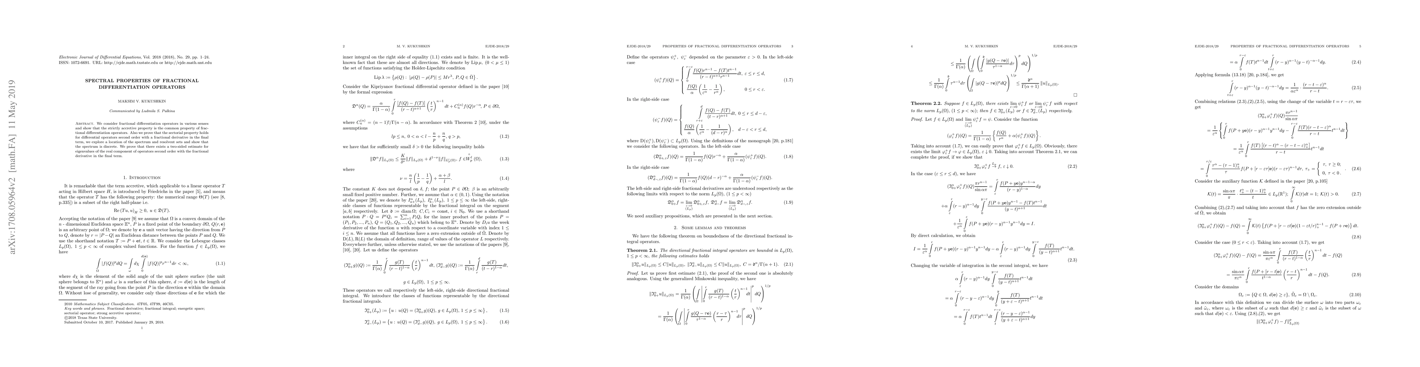 This paper explores the spectral properties of fractional differentiation operators, demonstrating that they share a strictly accretive property. It also proves the sectorial property for second-order differential operators with a fractional derivative, and shows that their spectrum is discrete with a two-sided estimate for eigenvalues.