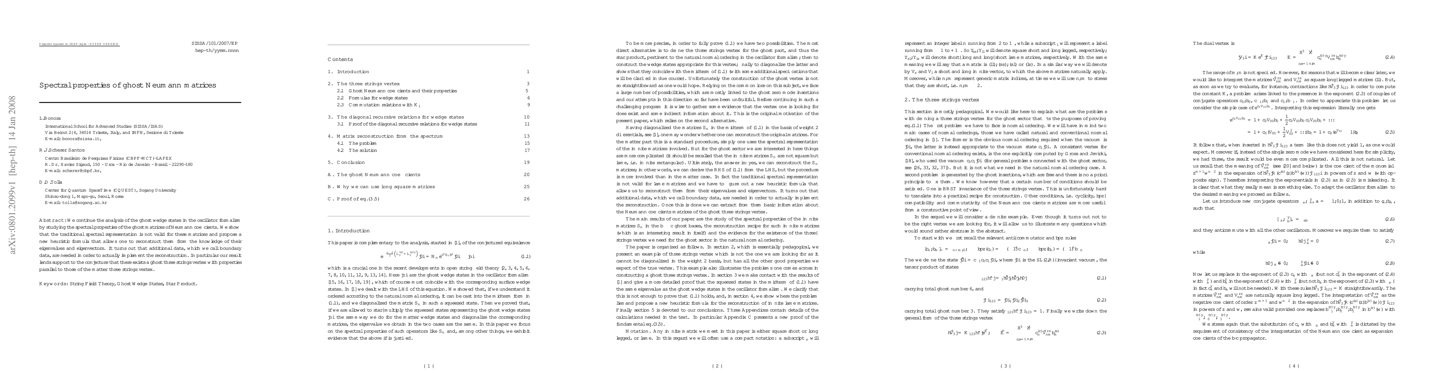 This paper investigates the spectral properties of ghost Neumann matrices in the oscillator formalism, demonstrating that traditional spectral representations are invalid. It proposes a new heuristic formula for reconstructing these matrices, emphasizing the necessity of additional boundary data for implementation, and supports the conjecture of a ghost three strings vertex.
