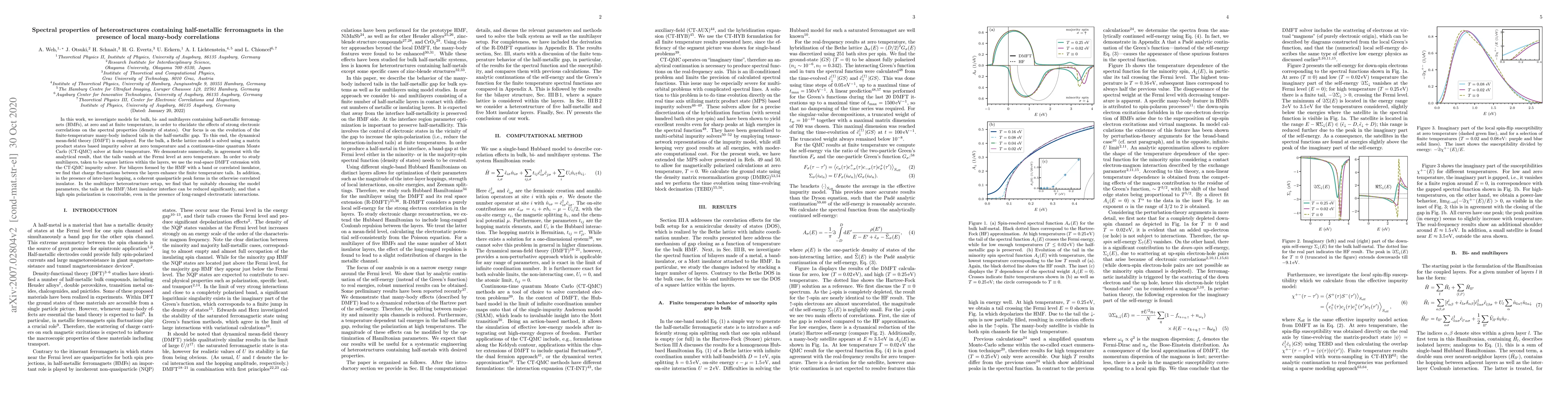 This research explores the spectral properties of heterostructures with half-metallic ferromagnets under various conditions using DMFT, revealing that finite-temperature many-body interactions induce tails in the half-metallic gap, which can be mitigated by specific model parameter choices. Charge fluctuations and inter-layer hopping further influence these spectral features.