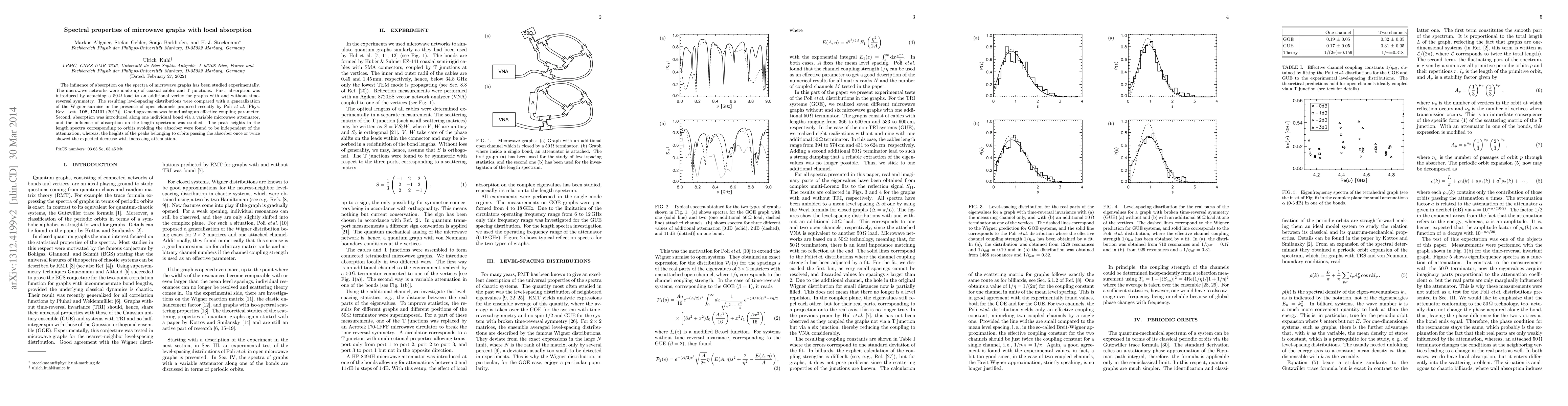This paper experimentally investigates the spectral properties of microwave graphs with local absorption, finding that the level-spacing distributions match a generalized Wigner surmise when open channels are present. Additionally, it reveals that peak heights in length spectra for orbits avoiding the absorber remain constant, while those for orbits passing the absorber decrease with increased attenuation.