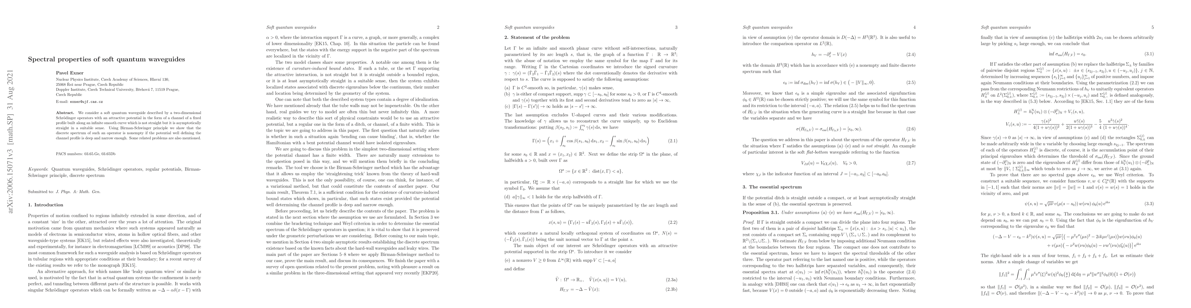 We consider a soft quantum waveguide described by a two-dimensional Schr\"odinger operators with an attractive potential in the form of a channel of a fixed profile built along an infinite smooth curve which is not straight but it is asymptotically straight in a suitable sense. Using Birman-Schwinger principle we show that the discrete spectrum of such an operator is nonempty if the potential well defining the channel profile is deep and narrow enough. Some related problems are also mentioned.