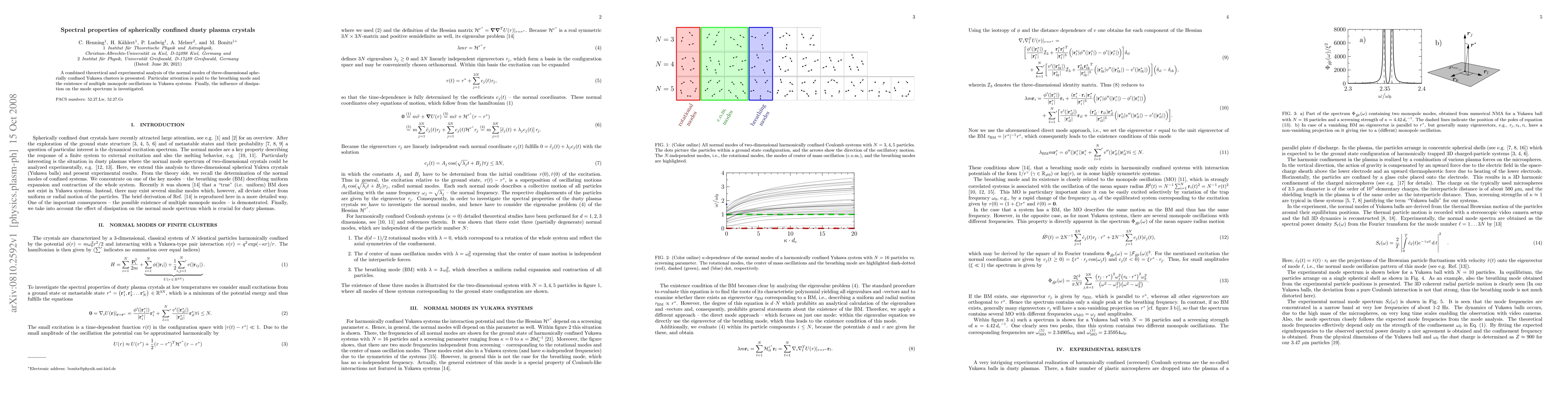 A combined theoretical and experimental analysis of the normal modes of three-dimensional spherially confined Yukawa clusters is presented. Particular attention is paid to the breathing mode and the existence of multiple monopole oscillations in Yukawa systems. Finally, the influence of dissipation on the mode spectrum is investigated.