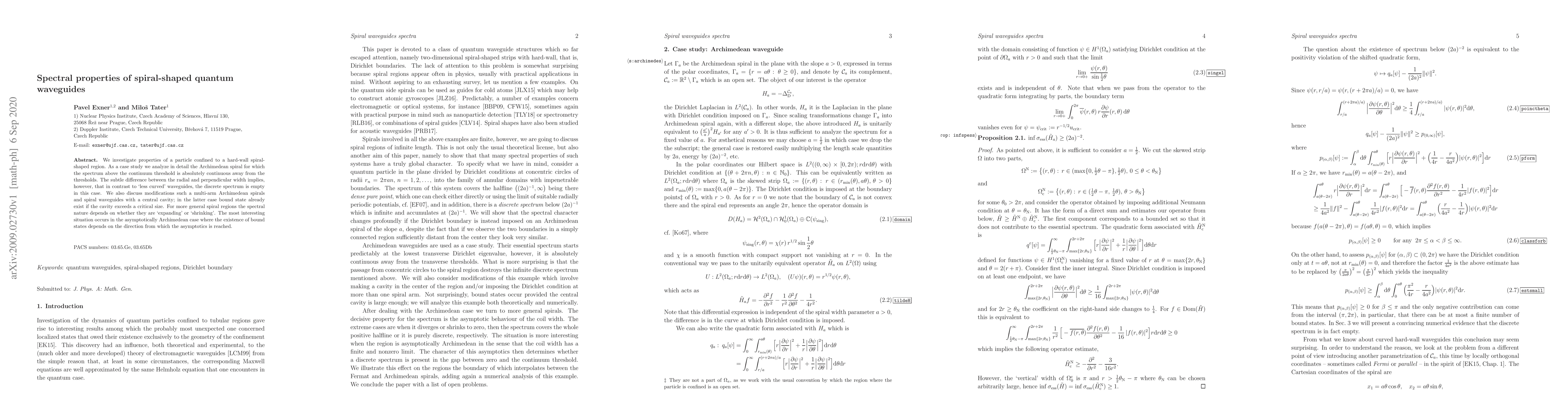 Researchers studied spiral-shaped quantum waveguides and found that certain types have empty discrete spectra, while others have bound states depending on their shape and size. Their findings have implications for understanding the behavior of particles in confined regions.
