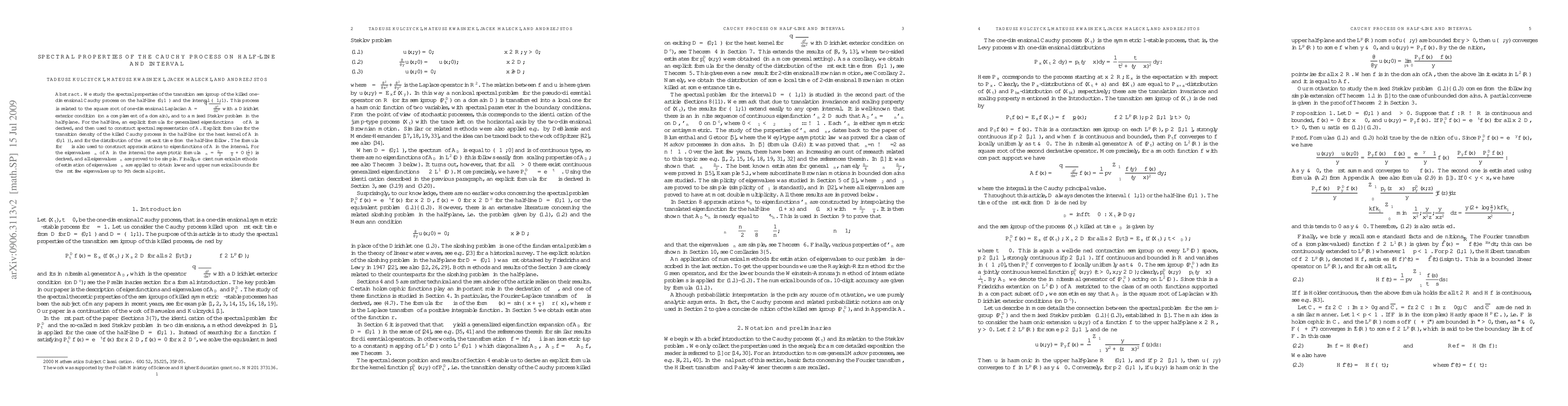 We study the spectral properties of the transition semigroup of the killed one-dimensional Cauchy process on the half-line (0,infty) and the interval (-1,1). This process is related to the square root of one-dimensional Laplacian A = -sqrt(-d^2/dx^2) with a Dirichlet exterior condition (on a complement of a domain), and to a mixed Steklov problem in the half-plane. For the half-line, an explicit formula for generalized eigenfunctions psi_lambda of A is derived, and then used to construct spectral representation of A. Explicit formulas for the transition density of the killed Cauchy process in the half-line (or the heat kernel of A in (0,infty)), and for the distribution of the first exit time from the half-line follow. The formula for psi_lambda is also used to construct approximations to eigenfunctions of A in the interval. For the eigenvalues lambda_n of A in the interval the asymptotic formula lambda_n = n pi/2 - pi/8 + O(1/n) is derived, and all eigenvalues lambda_n are proved to be simple. Finally, efficient numerical methods of estimation of eigenvalues lambda_n are applied to obtain lower and upper numerical bounds for the first few eigenvalues up to 9th decimal point.