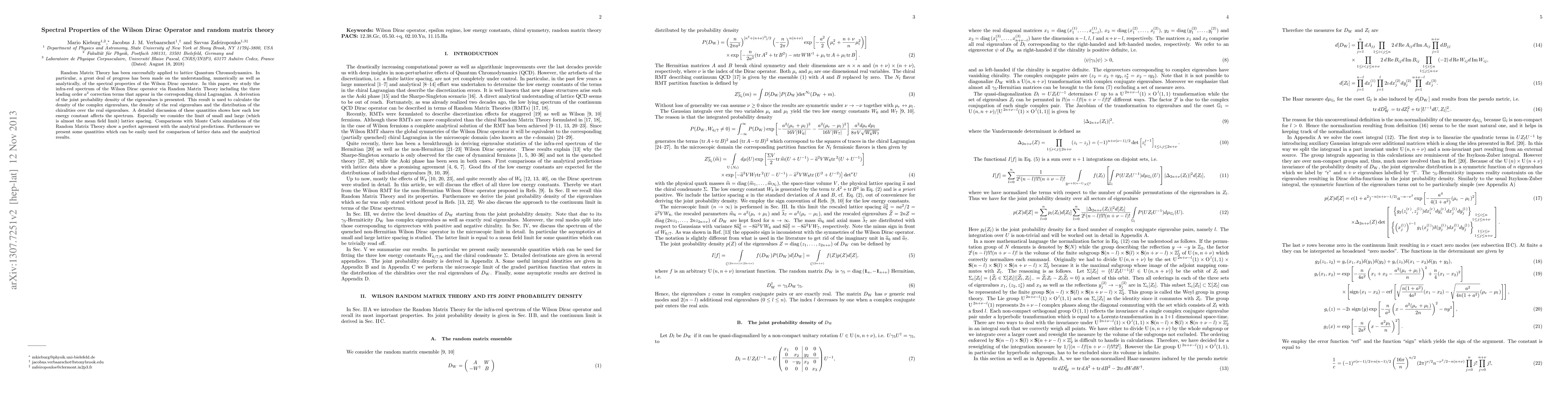 This paper investigates the infra-red spectrum of the Wilson Dirac operator using Random Matrix Theory, deriving the joint probability density of its eigenvalues and analyzing the spectral properties including chirality distributions. Analytical results are compared with Monte Carlo simulations, showing strong agreement.