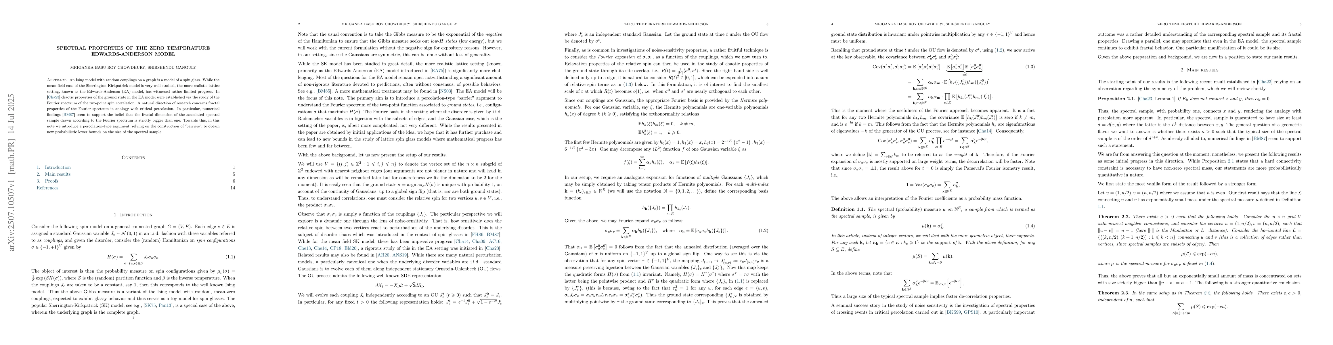 An Ising model with random couplings on a graph is a model of a spin glass. While the mean field case of the Sherrington-Kirkpatrick model is very well studied, the more realistic lattice setting, known as the Edwards-Anderson (EA) model, has witnessed rather limited progress. In (Chatterjee,'23) chaotic properties of the ground state in the EA model were established via the study of the Fourier spectrum of the two-point spin correlation. A natural direction of research concerns fractal properties of the Fourier spectrum in analogy with critical percolation. In particular, numerical findings (Bray, Moore,'87) seem to support the belief that the fractal dimension of the associated spectral sample drawn according to the Fourier spectrum is strictly bigger than one. Towards this, in this note we introduce a percolation-type argument, relying on the construction of ``barriers'', to obtain new probabilistic lower bounds on the size of the spectral sample.