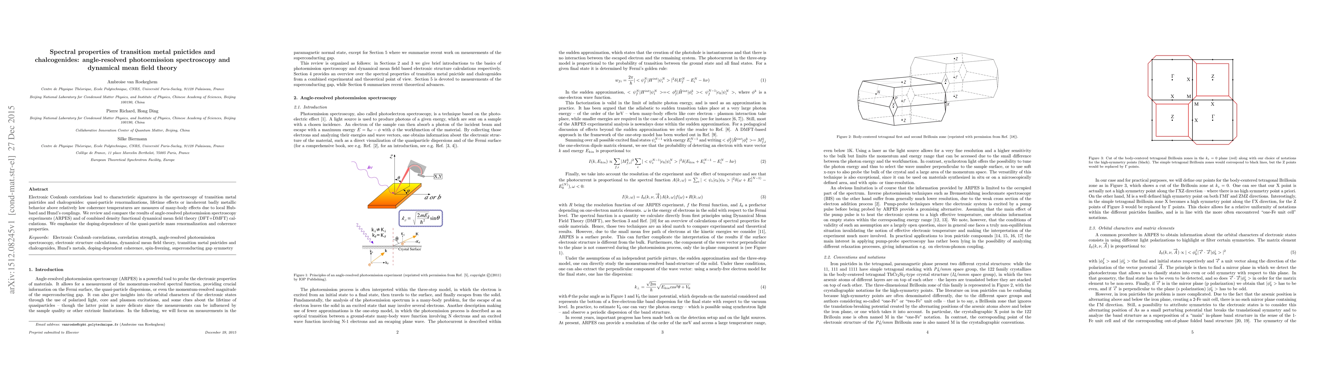 This paper reviews spectroscopic signatures in transition metal pnictides and chalcogenides, highlighting quasi-particle renormalizations and effects due to electronic Coulomb correlations. It compares ARPES experiments and DFT+DMFT calculations, focusing on the doping-dependence of quasi-particle mass and coherence properties.