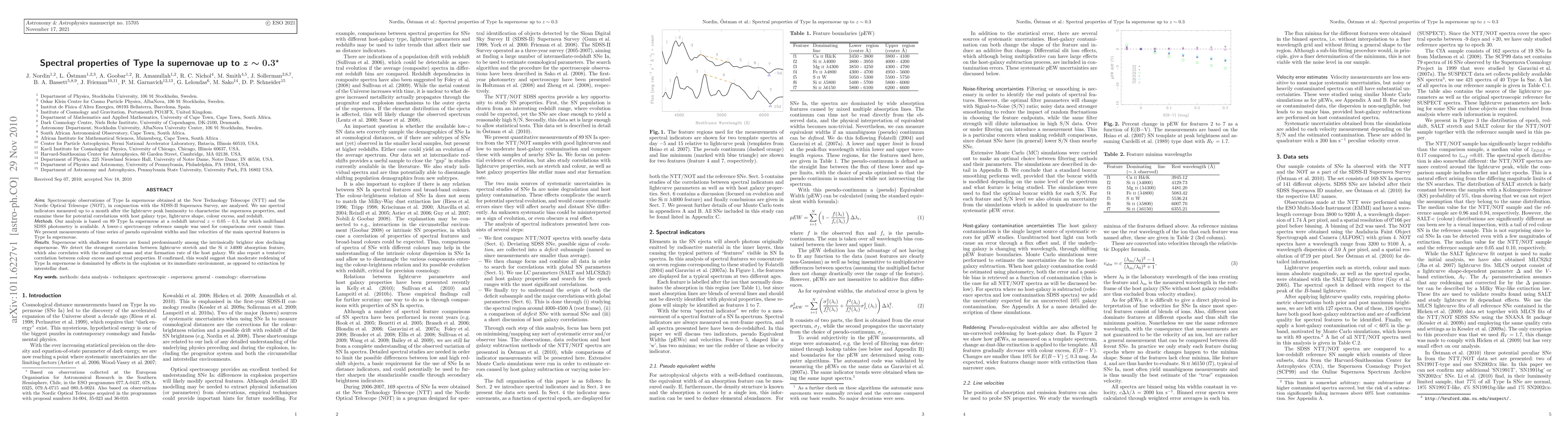 This study analyzes spectroscopic data from Type Ia supernovae up to a redshift of z~0.3, finding that the spectral features correlate strongly with lightcurve stretch and host galaxy characteristics. The strongest correlation observed is between the Si ii 4000 absorption feature and the supernova's intrinsic brightness and host galaxy's star formation rate.
