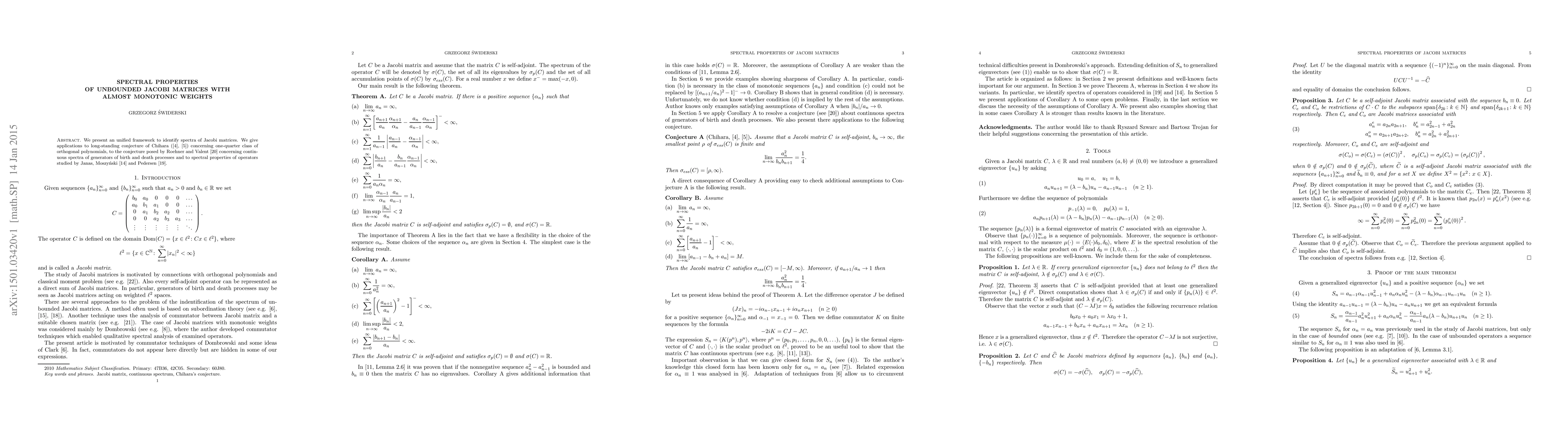Researchers develop a unified framework to analyze spectra of Jacobi matrices with almost monotonic weights, with applications in solving long-standing conjectures related to orthogonal polynomials and birth-death processes.