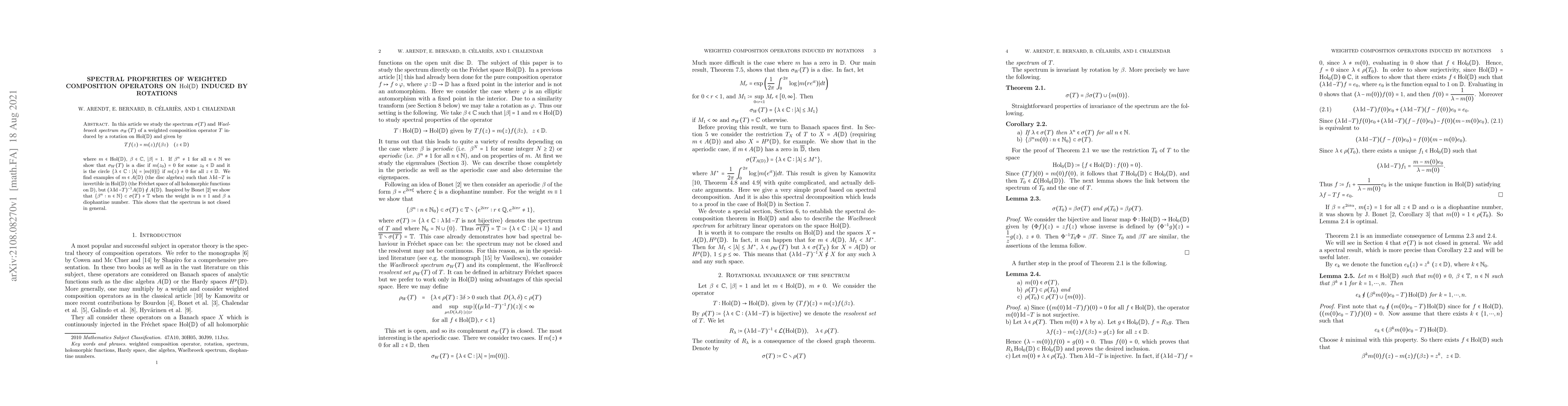 This paper studies the spectral properties of weighted composition operators on the unit disc induced by rotations, finding that the spectrum is not closed in general.