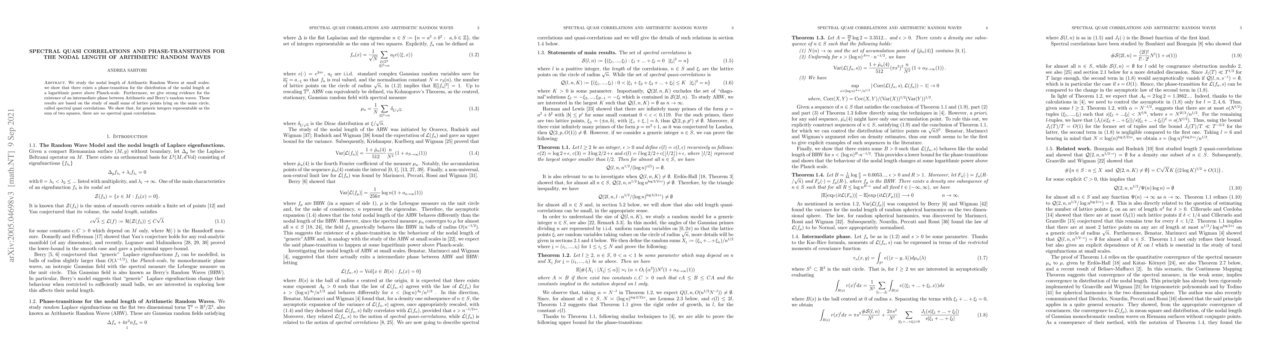 Spectral quasi correlations are small sums of lattice points lying on the same circle; we show that, for generic integers representable as the sum of two squares, there are no spectral quasi-correlations. Moreover, we apply our result to study the nodal length of Arithmetic Random Waves at small scales: we show that there exists a phase-transition for the distribution of the nodal length at a logarithmic power above Planck-scale. Furthermore, we give strong evidence for the existence of an intermediate phase between Arithmetic and Berry's random waves.