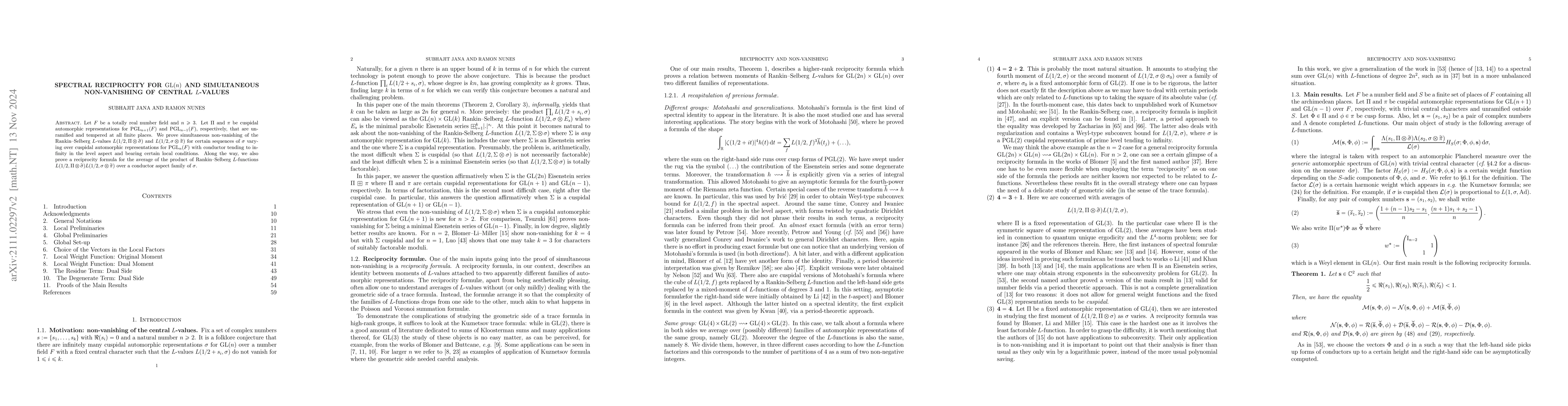 This paper establishes a reciprocity formula for the average of Rankin-Selberg $L$-functions and proves the simultaneous non-vanishing of central $L$-values under certain conditions for automorphic representations over a number field, particularly when the field is totally real and representations are tempered.