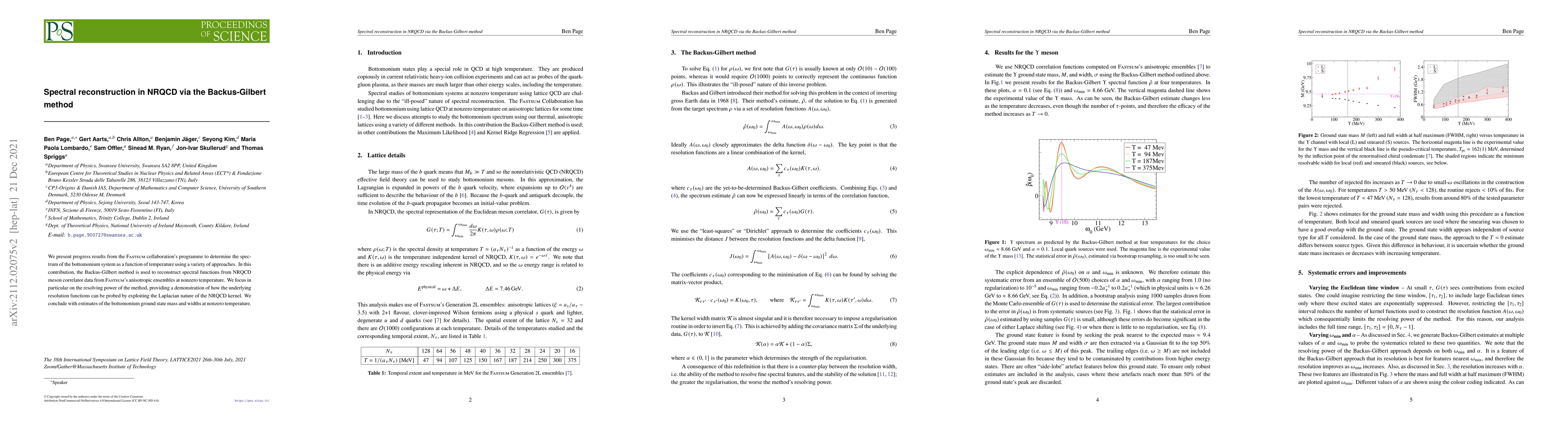 Researchers used the Backus-Gilbert method to reconstruct spectral functions from NRQCD meson correlator data at nonzero temperature, estimating the bottomonium ground state mass and widths with improved resolution.