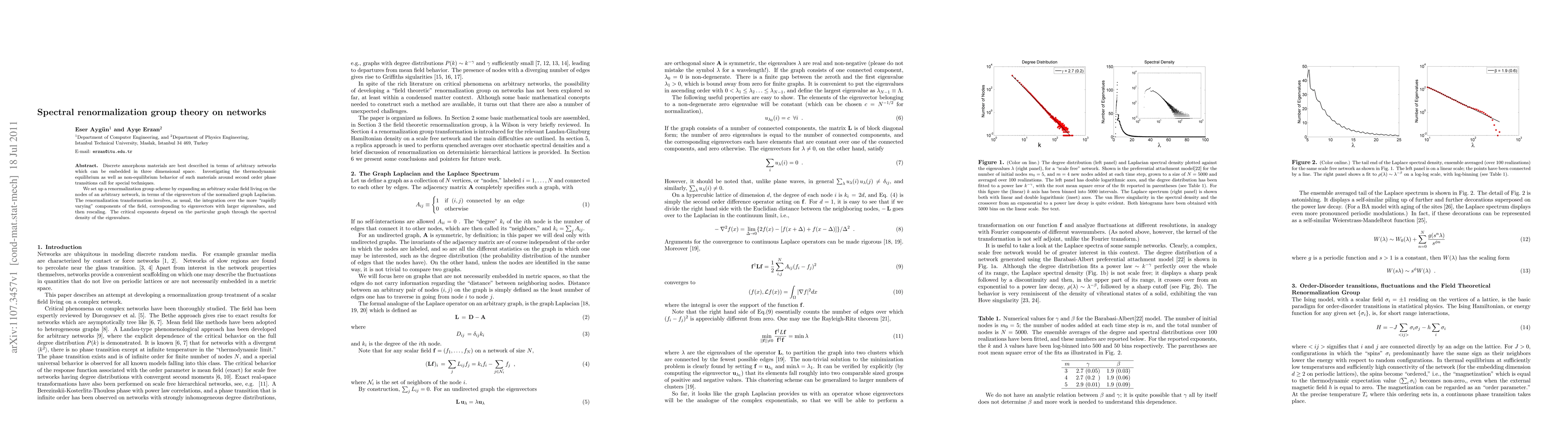 This paper develops a spectral renormalization group theory for amorphous materials represented as networks, employing the eigenvectors of the normalized graph Laplacian. The method captures the critical behavior around second-order phase transitions, with critical exponents determined by the graph's spectral density.