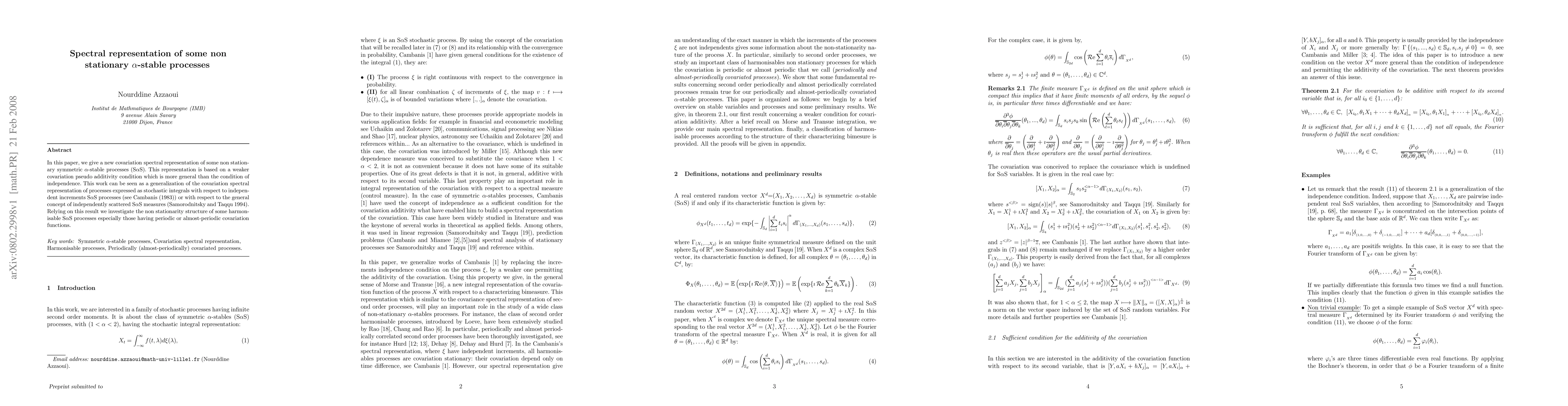 This paper presents a new spectral representation for non-stationary symmetric $\alpha$-stable processes based on a weaker covariation pseudo additivity condition, generalizing previous results for independent increments. It explores the non-stationarity structure of harmonisable S$\alpha$S processes with periodic or almost-periodic covariation functions.