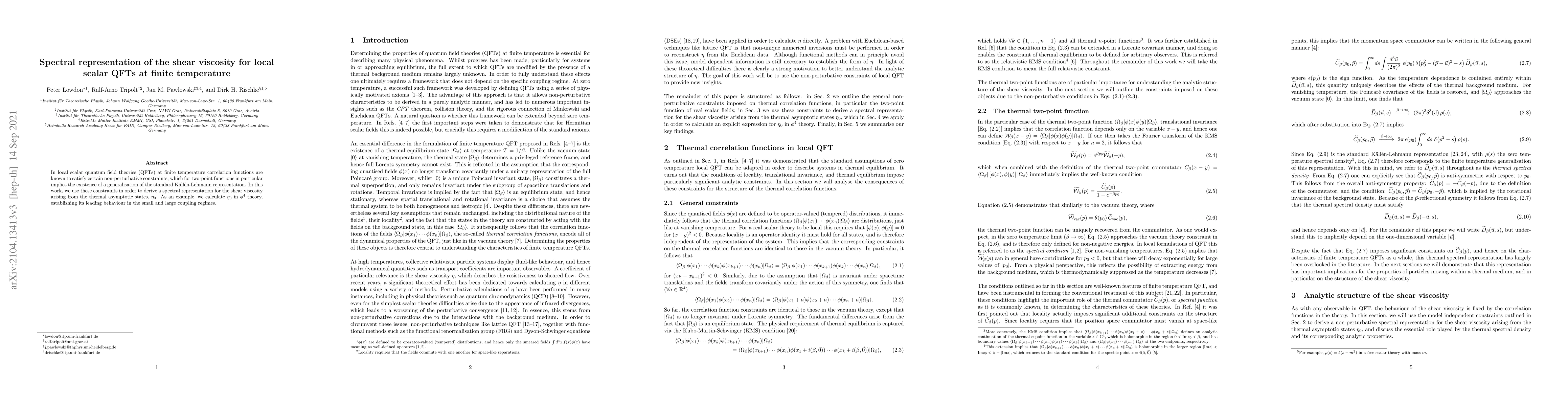 This paper derives a spectral representation for the shear viscosity in local scalar quantum field theories at finite temperature, leveraging non-perturbative constraints on correlation functions. It calculates the shear viscosity $\eta_{0}$ in $\phi^{4}$ theory, determining its behavior in both small and large coupling regimes.