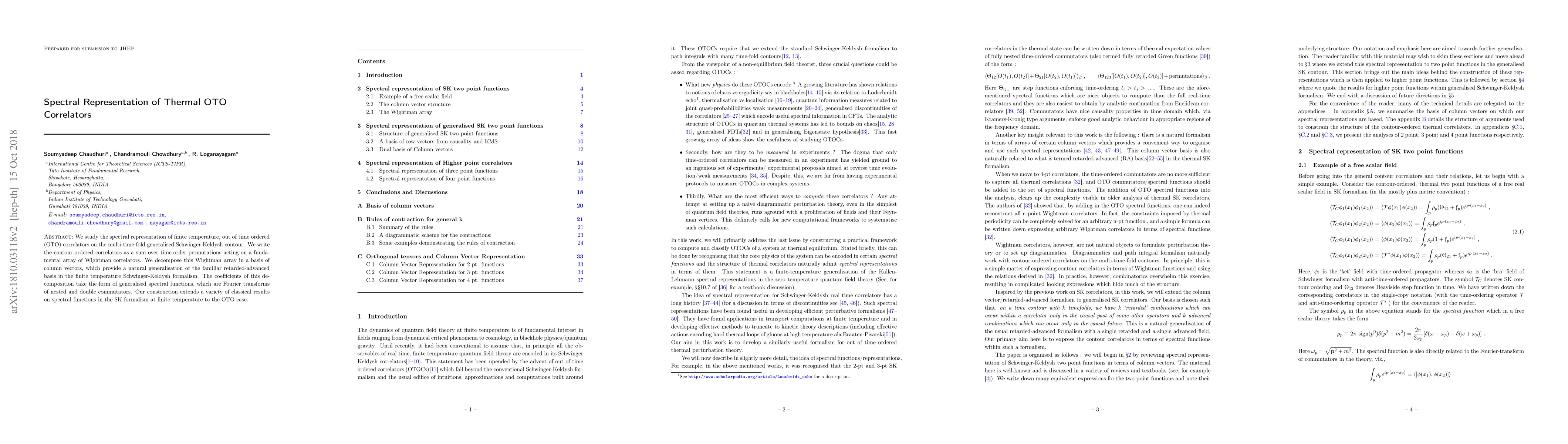 This paper investigates the spectral representation of finite temperature out-of-time-ordered (OTO) correlators using a generalised Schwinger-Keldysh contour. It decomposes Wightman correlators into a basis of column vectors, providing a new perspective on spectral functions and extending classical results to the OTO case.