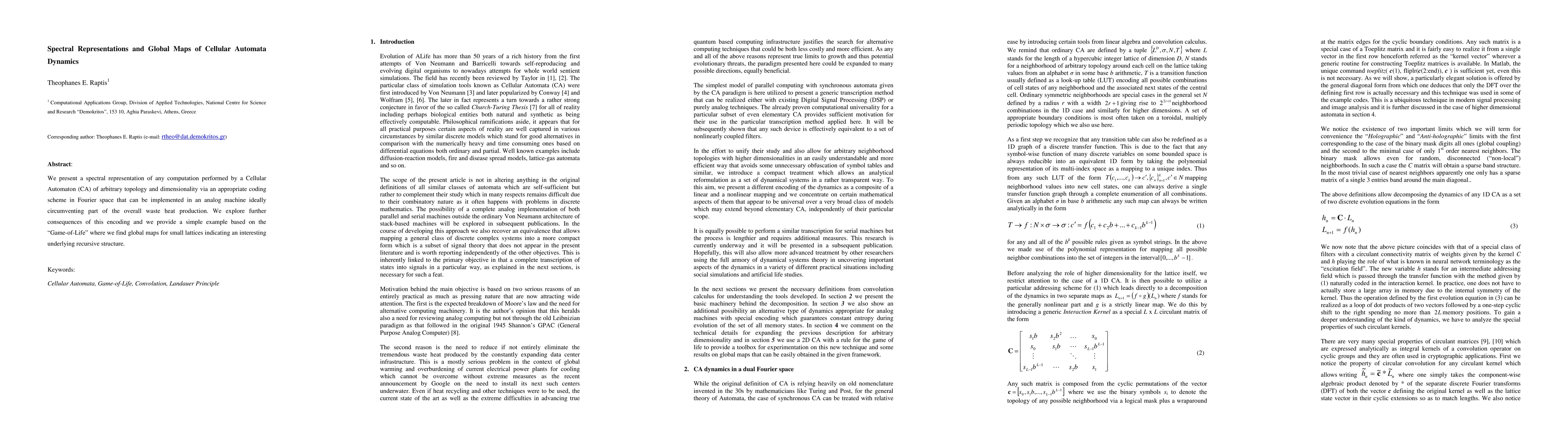 Researchers developed a method to represent cellular automata dynamics in Fourier space, enabling more efficient computation with reduced waste heat production. This technique revealed underlying recursive structures in simple examples like the Game-of-Life.