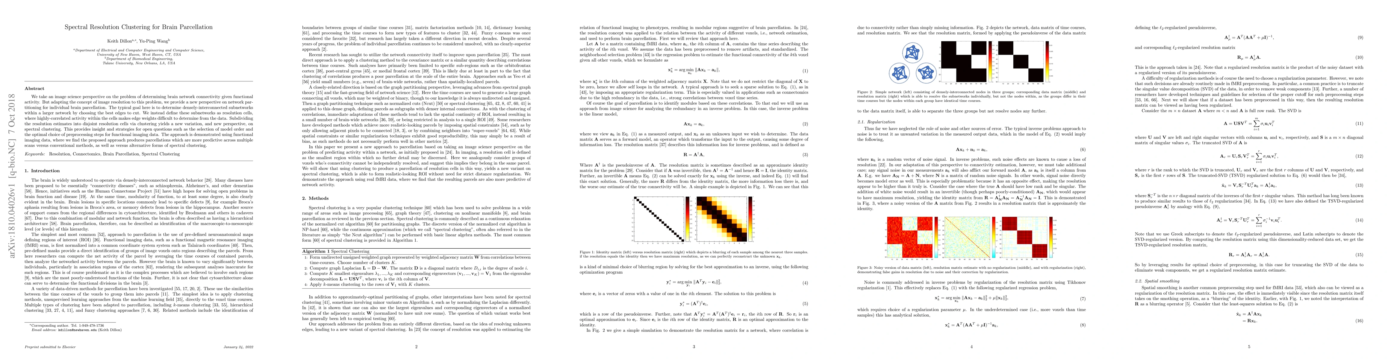 This paper introduces a novel spectral resolution clustering method for brain parcellation, aiming to identify densely-interconnected subnetworks by subdividing resolution estimates into disjoint resolution cells. The method demonstrates improved predictive accuracy across multiple scans compared to conventional and alternative spectral clustering techniques.