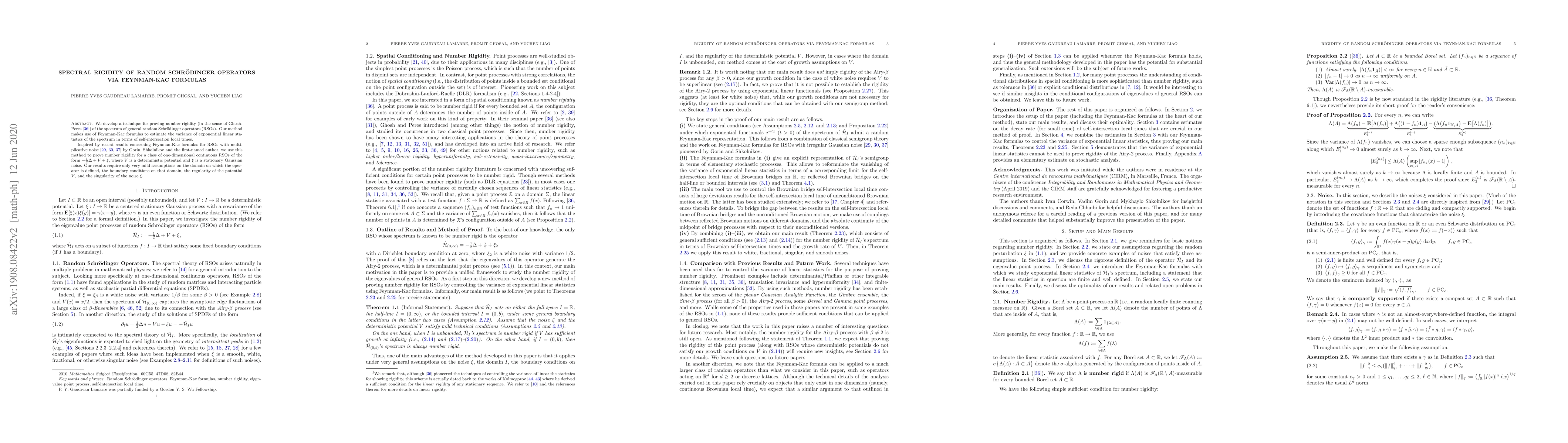 This paper develops a novel technique using Feynman-Kac formulas to prove number rigidity of the spectrum for general random Schrödinger operators. It applies this method to demonstrate rigidity for one-dimensional continuous RSOs with a deterministic potential and stationary Gaussian noise.