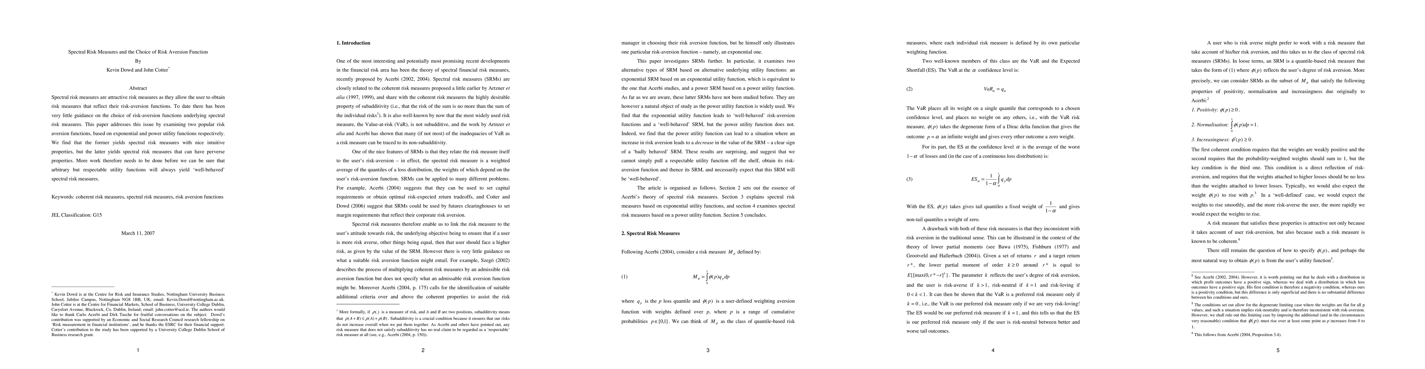 This paper investigates the choice of risk-aversion functions for spectral risk measures, finding that exponential utility functions produce intuitive results while power utility functions may yield perverse outcomes, indicating a need for further research on utility function selection.