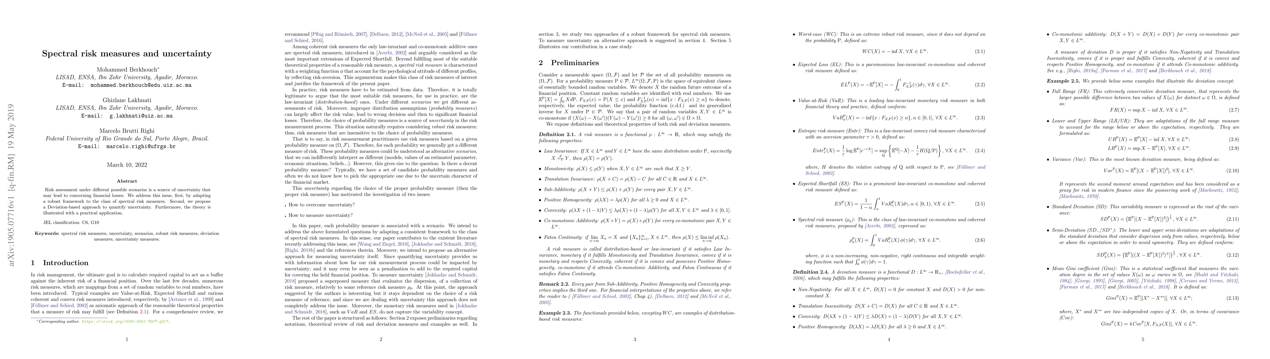 This paper adapts a robust framework to spectral risk measures for assessing financial risk under uncertainty and proposes a deviation-based approach to quantify this uncertainty, demonstrated through a case study on the NASDAQ index.