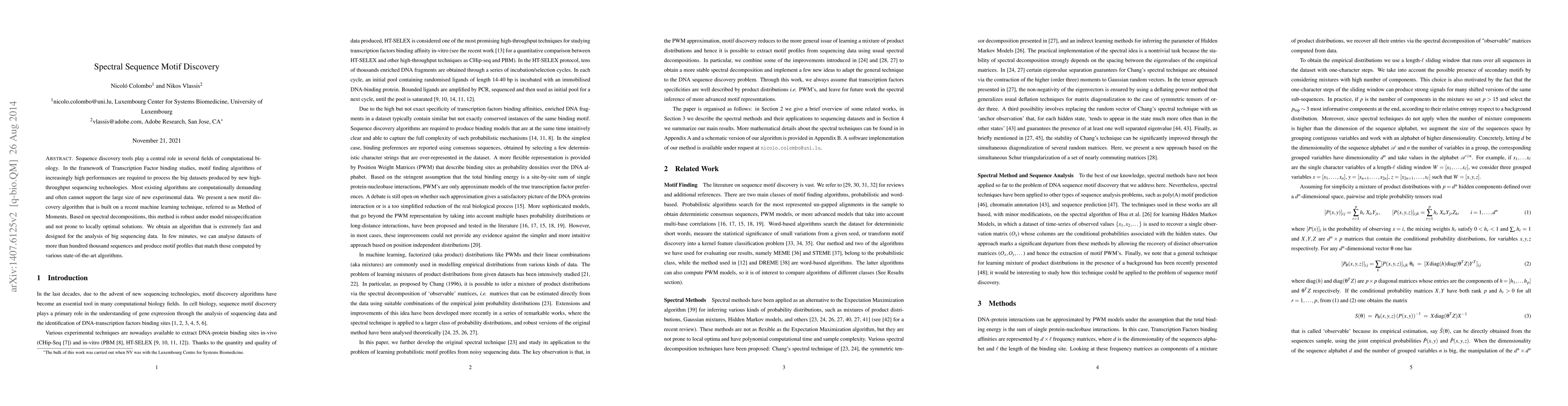 This paper introduces a novel motif discovery algorithm based on the Method of Moments and spectral decompositions, designed to efficiently handle large datasets from high-throughput sequencing technologies. The proposed algorithm is both fast and robust, capable of processing hundreds of thousands of sequences in minutes.