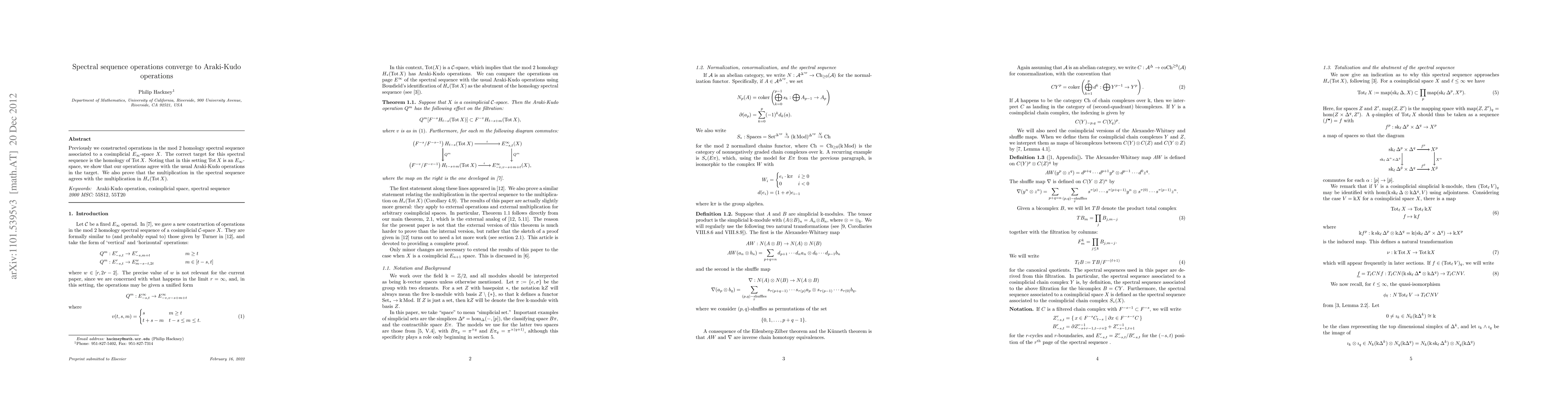 Researchers show that spectral sequence operations converge to Araki-Kudo operations in E-infinity space homology, matching the target's multiplication pattern.