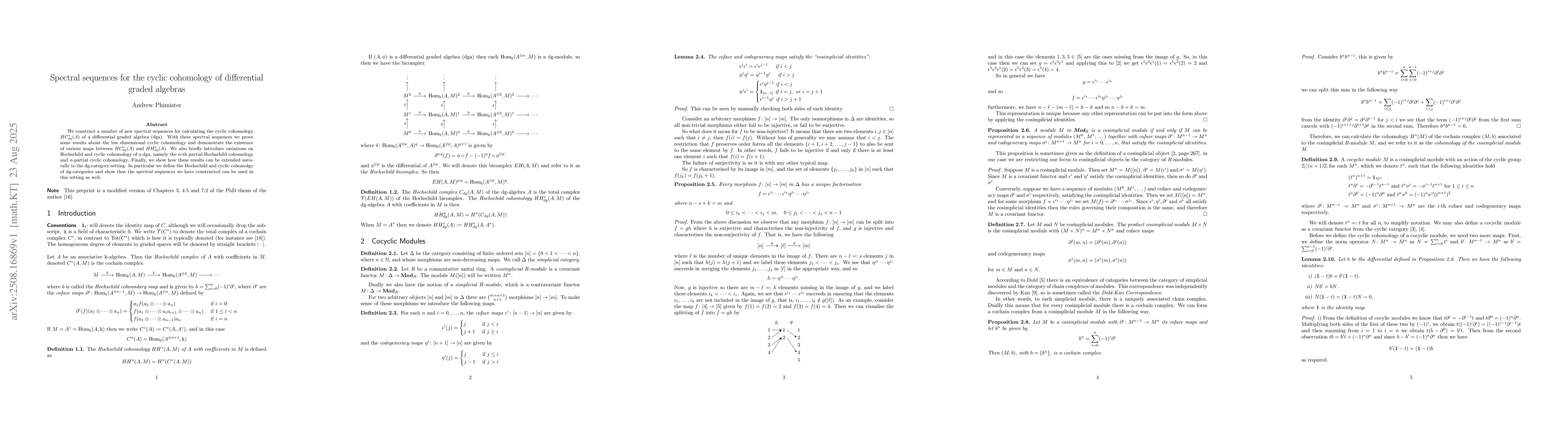We construct a number of new spectral sequences for calculating the cyclic cohomology $HC^*_{dg}(A)$ of a differential graded algebra (dga). With these spectral sequences we prove some results about the low dimensional cyclic cohomology and demonstrate the existence of various maps between $HC^*_{dg}(A)$ and $HH^*_{dg}(A)$. We also briefly introduce variations on Hochschild and cyclic cohomology of a dga, namely the $n$-th partial Hochschild cohomology and $n$-partial cyclic cohomology. Finally, we show how these results can be extended naturally to the dg-category setting. In particular we define the Hochschild and cyclic cohomolgy of dg-categories and show that the spectral sequences we have constructed can be used in this setting as well.