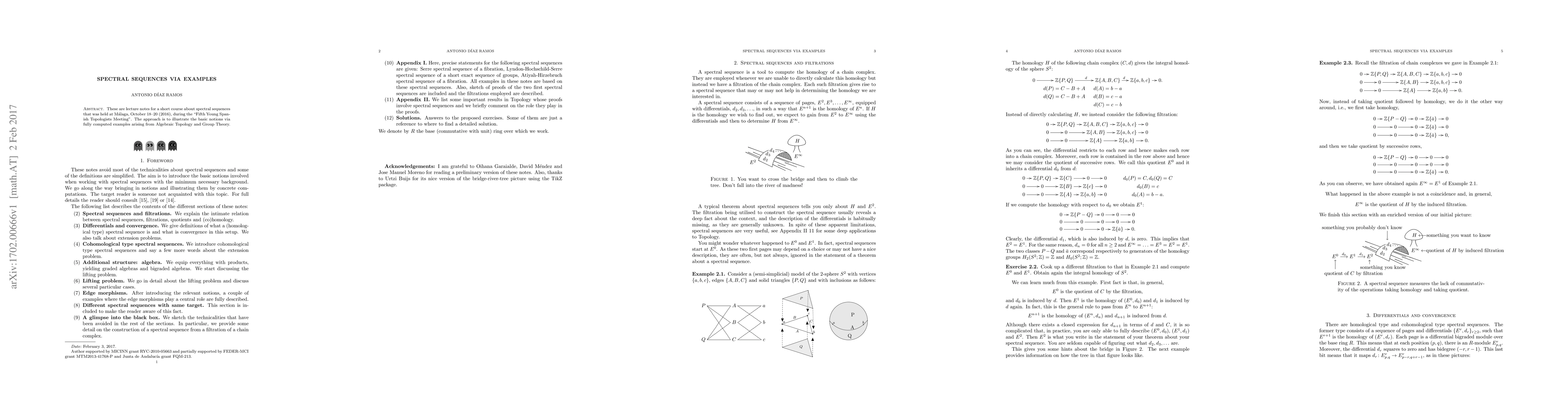 Summary: These lecture notes provide an accessible introduction to spectral sequences through fully computed examples from Algebraic Topology and Group Theory, aimed at young mathematicians attending a topology meeting in Málaga. The focus is on illustrating fundamental concepts through practical applications.