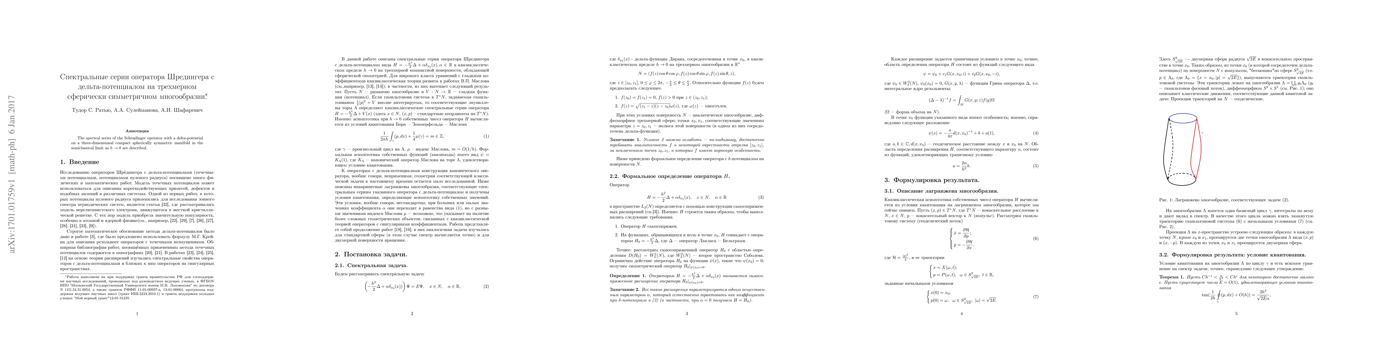 The spectral series of the Schr\"odinger operator with a delta-potential on a three-dimensional compact spherically symmetric manifold in the semiclassical limit as $h\to0$ are described.