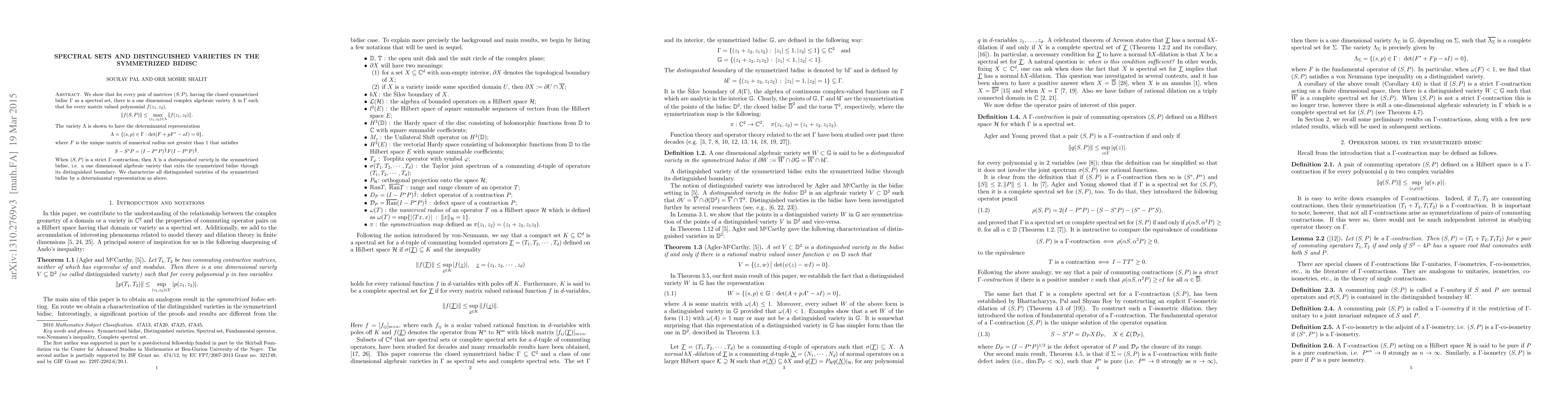 We show that for every pair of matrices (S,P), having the closed symmetrized bidisc $\Gamma$ as a spectral set, there is a one dimensional complex algebraic variety $\Lambda$ in $\Gamma$ such that for every matrix valued polynomial f, the norm of f(S,P) is less then the sup norm of f on $\Lambda$. The variety $\Lambda$ is shown to have a particular determinantal representation, related to the so-called "fundamental operator" of the pair (S,P). When (S,P) is a strict $\Gamma$-contraction, then $\Lambda$ is a distinguished variety in the symmetrized bidisc, i.e., a one dimensional algebraic variety that exits the symmetrized bidisc through its distinguished boundary. We characterize all distinguished varieties of the symmetrized bidisc by a determinantal representation as above.