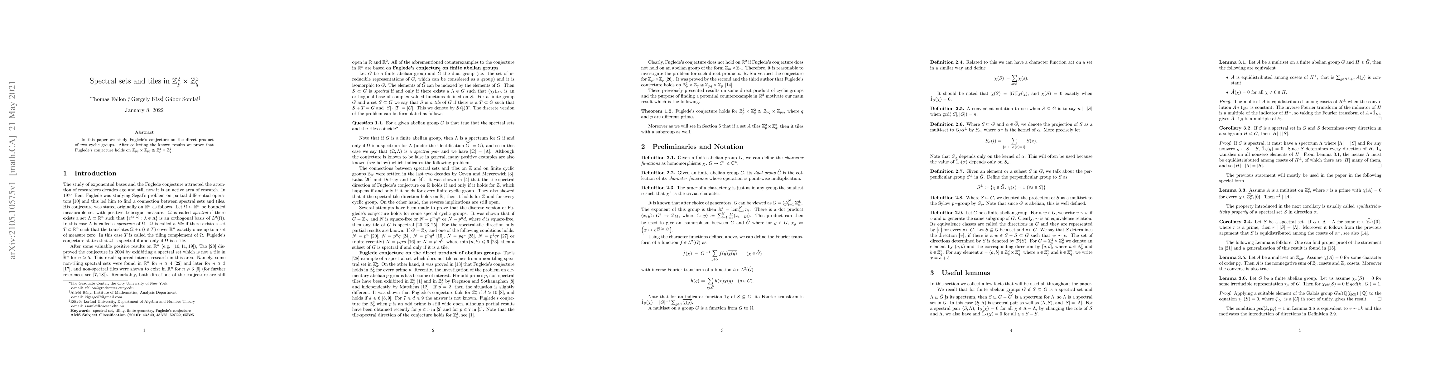 This research contributes to the understanding of spectral sets and their properties, with potential applications in number theory and algebraic geometry.