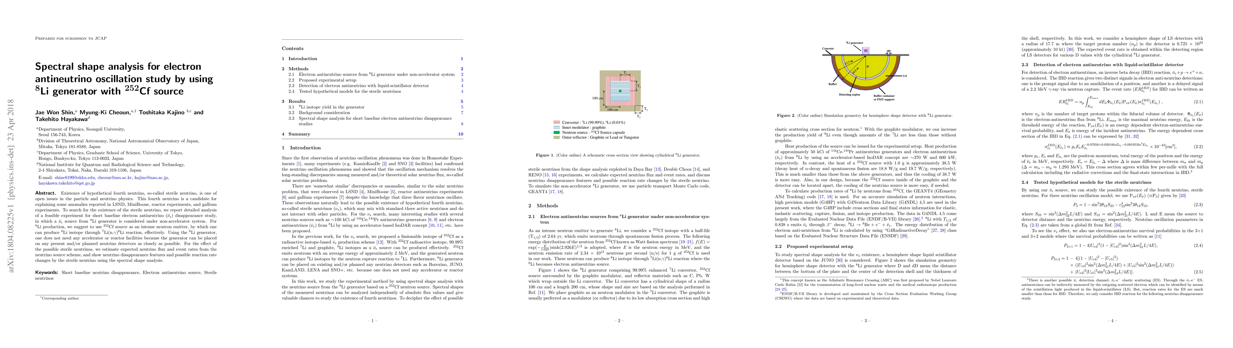 This paper proposes a method to study electron antineutrino oscillation using a $^{8}$Li generator powered by a $^{252}$Cf neutron source, aiming to detect a hypothetical fourth sterile neutrino that could explain anomalies in various neutrino experiments. The analysis includes spectral shape assessments to identify potential sterile neutrino effects on neutrino disappearance and reaction rates.