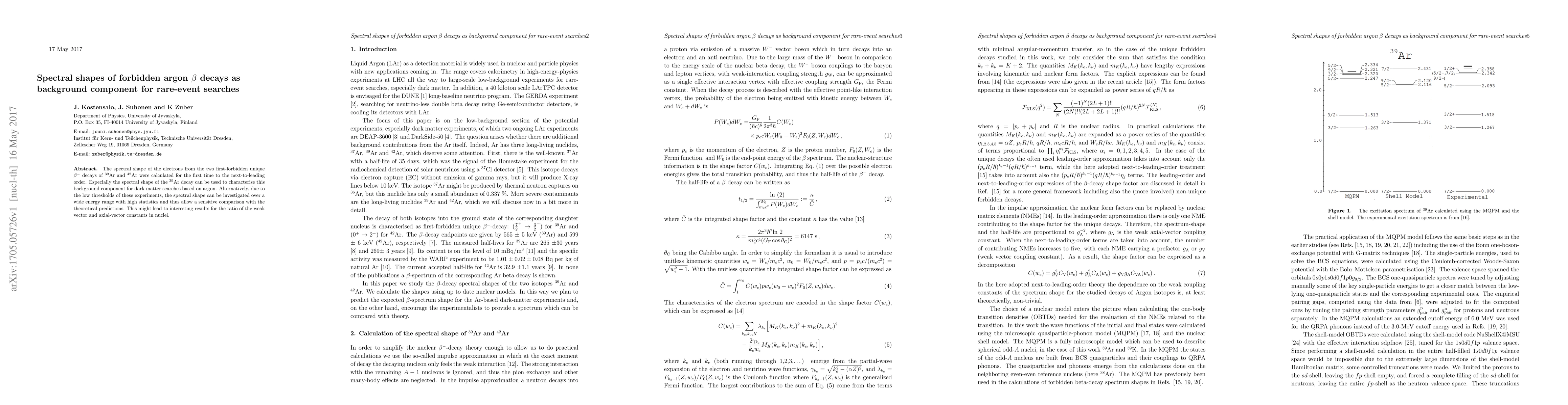 Researchers calculated the spectral shape of electrons from two rare argon beta decays to investigate background components for dark matter searches. The study aims to improve sensitivity in experiments and potentially reveal new insights into nuclear constants.