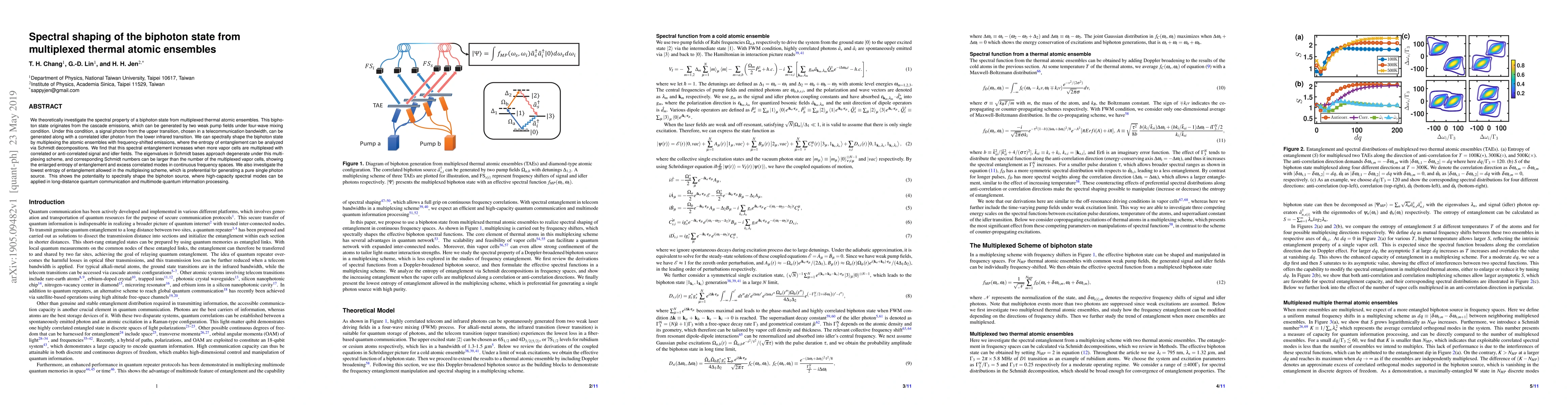 This paper explores the spectral shaping of biphoton states from multiplexed thermal atomic ensembles, revealing that spectral entanglement increases with more vapor cells. The study finds that the entropy of entanglement can be maximized, indicating potential for high-capacity spectral modes in quantum communication and multimode quantum information processing.