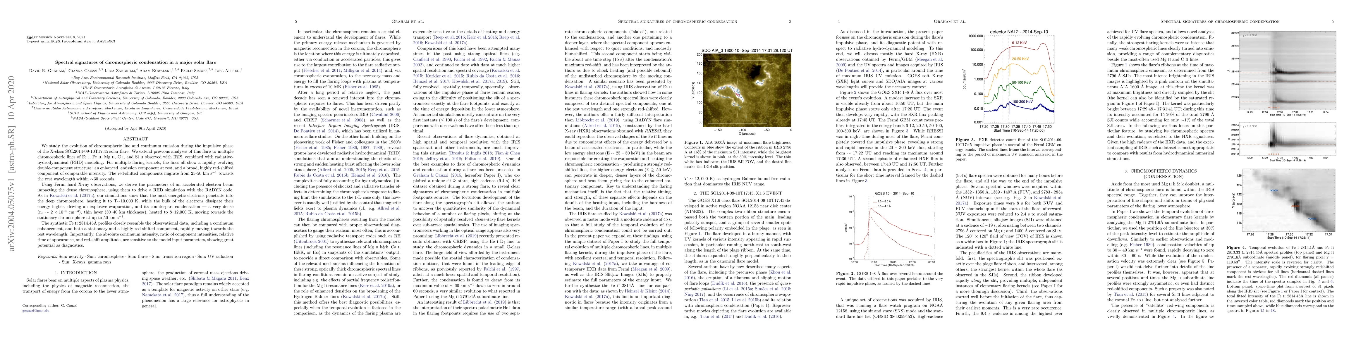 We study the evolution of chromospheric line and continuum emission during the impulsive phase of the X-class SOL2014-09-10T17:45 solar flare. We extend previous analyses of this flare to multiple chromospheric lines of Fe I, Fe II, Mg II, C I, and Si II, observed with IRIS, combined with radiative-hydrodynamical (RHD) modeling. For multiple flaring kernels, the lines all show a rapidly evolving double-component structure: an enhanced, emission component at rest, and a broad, highly red-shifted component of comparable intensity. The red-shifted components migrate from 25-50 km s$^{-1}$ towards the rest wavelength within $\sim$30 seconds. Using Fermi hard X-ray observations, we derive the parameters of an accelerated electron beam impacting the dense chromosphere, using them to drive a RHD simulation with the RADYN code. As in Kowalski et al. 2017a, our simulations show that the most energetic electrons penetrate into the deep chromosphere, heating it to T$\sim$10,000 K, while the bulk of the electrons dissipate their energy higher, driving an explosive evaporation, and its counterpart condensation -- a very dense (n$_e \sim 2 \times 10^{14}$ cm$^{-3}$), thin layer (30--40 km thickness), heated to 8--12,000 K, moving towards the stationary chromosphere at up to 50 km s$^{-1}$. The synthetic Fe II 2814.45A profiles closely resemble the observational data, including a continuum enhancement, and both a stationary and a highly red-shifted component, rapidly moving towards the rest wavelength. Importantly, the absolute continuum intensity, ratio of component intensities, relative time of appearance, and red-shift amplitude, are sensitive to the model input parameters, showing great potential as diagnostics.
