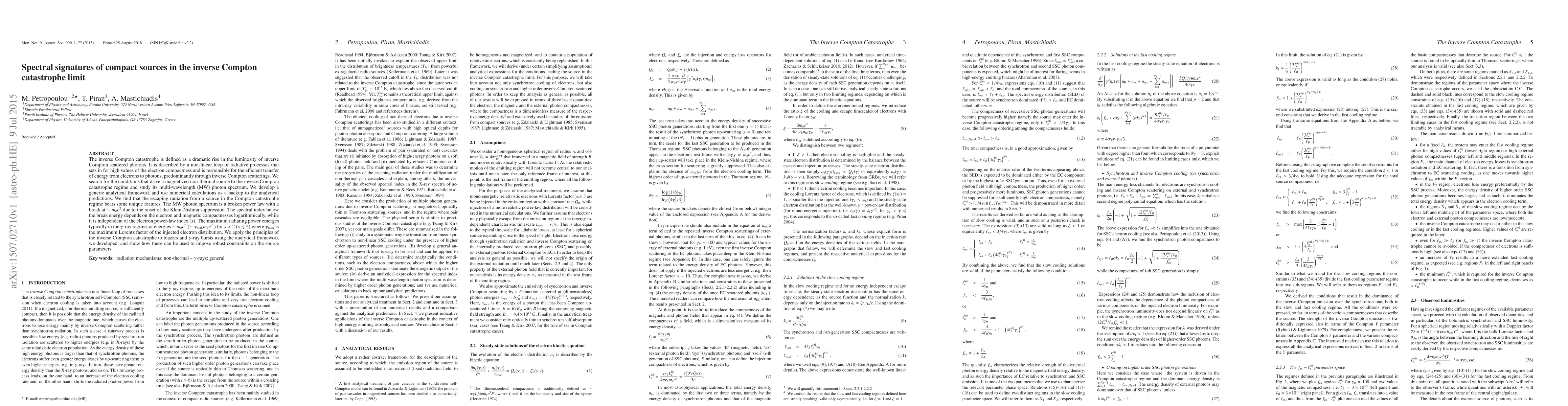 This paper explores the spectral signatures of compact sources entering the inverse Compton catastrophe regime, characterized by a dramatic rise in luminosity due to inverse Compton scattering. The study reveals a broken power-law multi-wavelength spectrum with a break at $\sim m_e c^2$, and applies the developed analytical framework to blazars and gamma-ray bursts to constrain their source parameters.