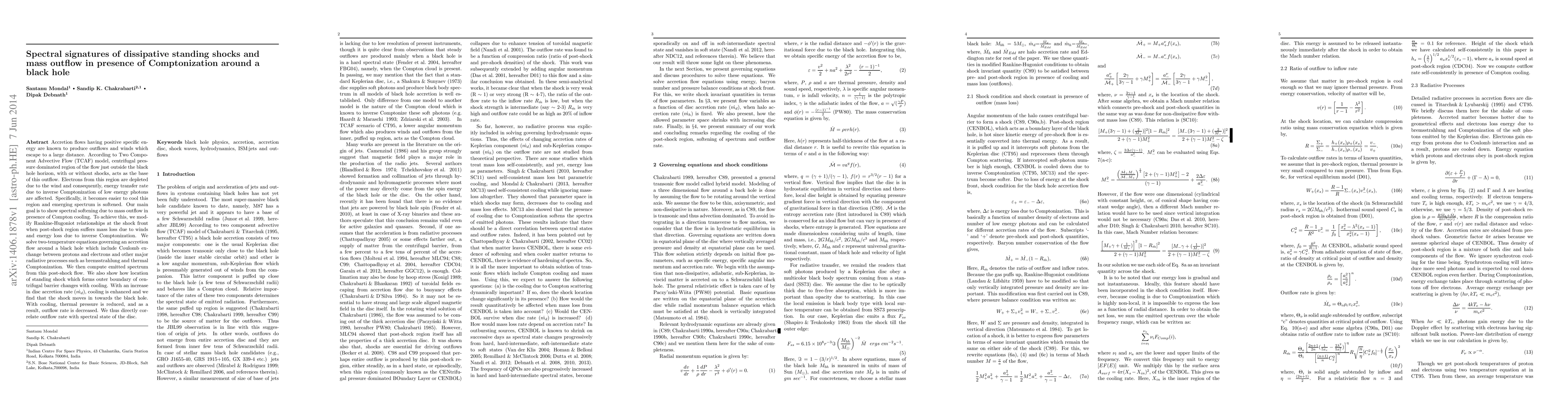 This research modifies Rankine-Hugoniot relationships to study spectral softening caused by mass outflow and Compton cooling in black hole accretion flows. It shows that increased disc accretion rate enhances cooling, shifting the standing shock closer to the black hole, and reducing outflow rate, directly linking outflow to the disc's spectral state.