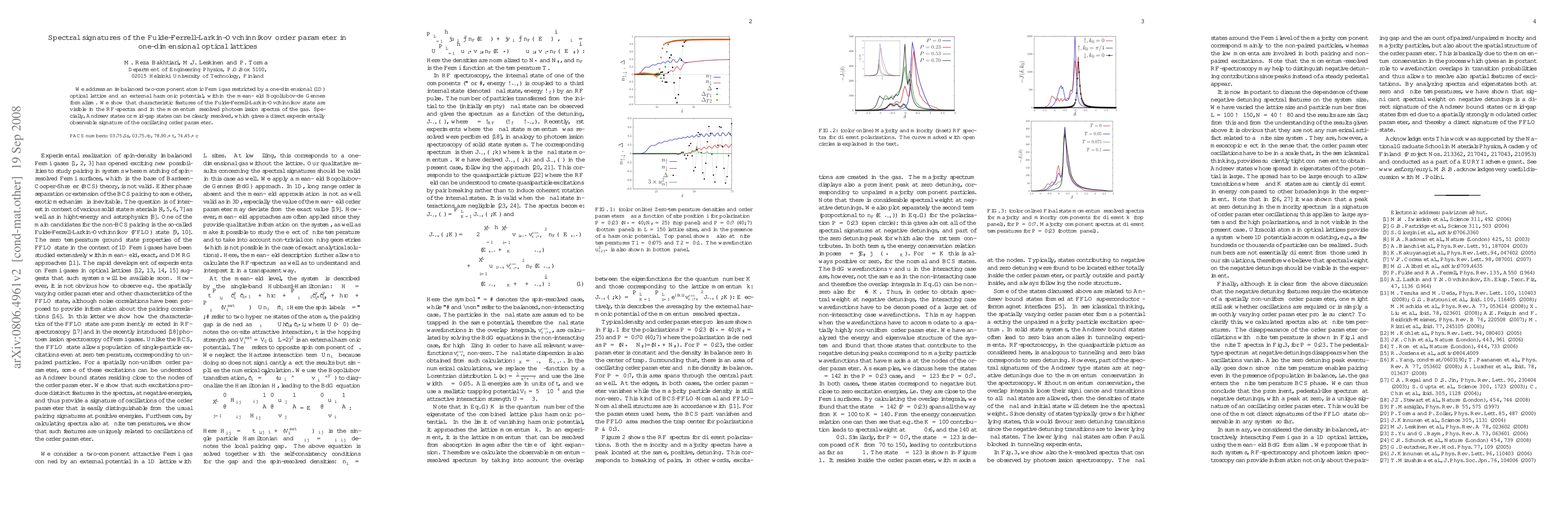We address an imbalanced two-component atomic Fermi gas restricted by a one-dimensional (1D) optical lattice and an external harmonic potential, within the mean-field Bogoliubov-de Gennes (BdG) formalism. We show that characteristic features of the Fulde-Ferrell-Larkin-Ovchinnikov (FFLO) state are visible in the RF-spectra and in the momentum resolved photoemission spectra of the gas. Specially, Andreev states or mid-gap states can be clearly resolved, which gives a direct experimentally observable signature of the oscillating order parameter.