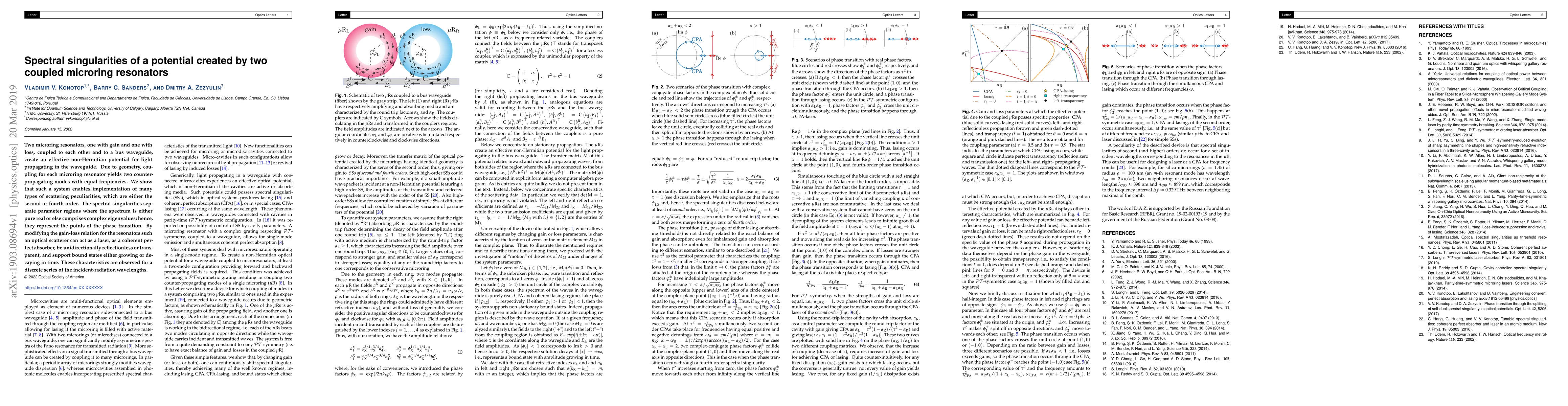 This paper investigates the spectral singularities in a potential created by two coupled microring resonators, one with gain and one with loss, showing how they enable various scattering phenomena and phase transitions. The system can function as a laser, coherent perfect absorber, or exhibit unidirectional reflectionless or transparency, depending on the gain-loss relation.