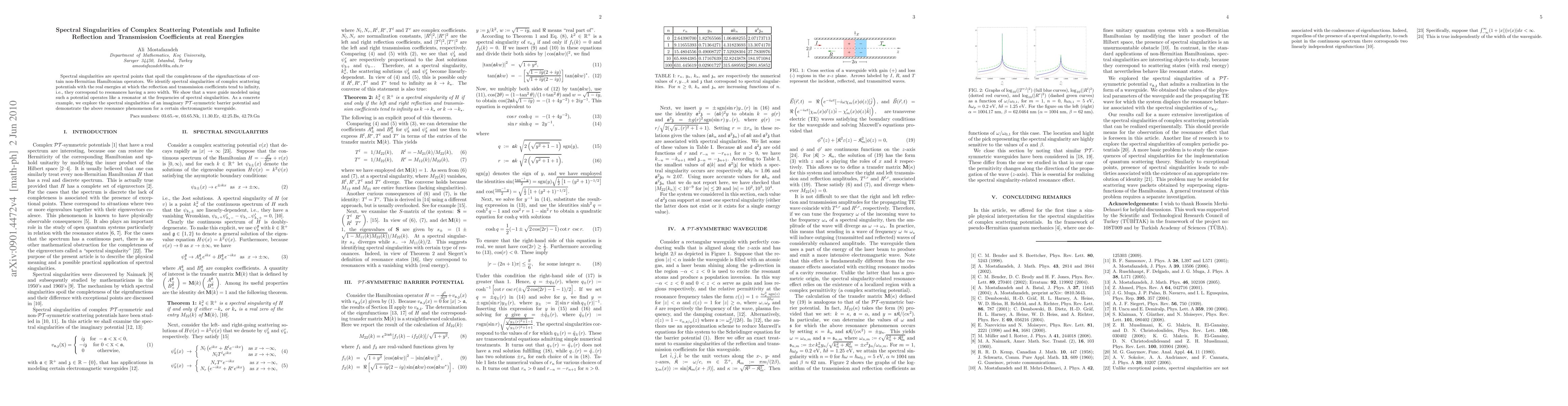 This paper identifies spectral singularities in complex scattering potentials as points where reflection and transmission coefficients become infinite at real energies, corresponding to zero-width resonances. It demonstrates the resonance behavior in waveguides using an imaginary PT-symmetric barrier potential as an example.