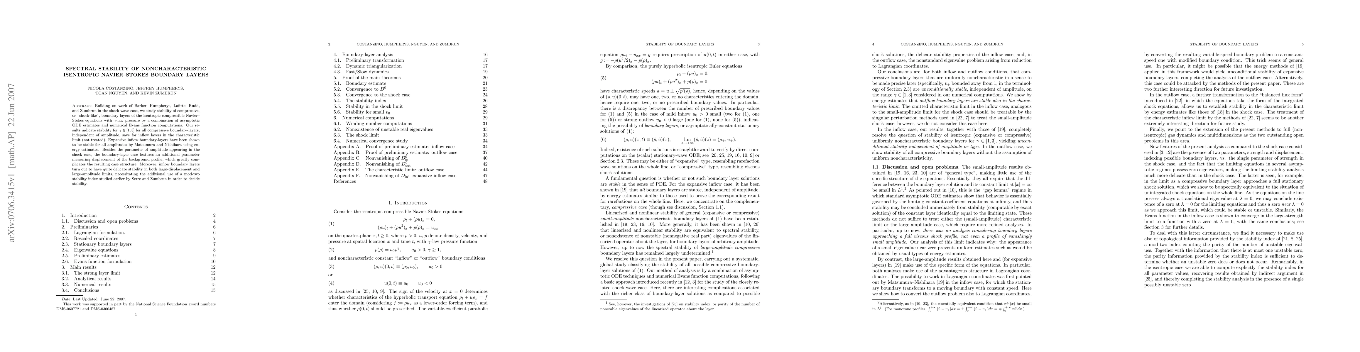 This paper investigates the spectral stability of compressive boundary layers in the isentropic Navier-Stokes equations, confirming stability for a range of gamma values, while also addressing the complexities introduced by displacement parameters and the delicate stability of inflow layers. Numerical and analytical methods are employed to achieve these results.