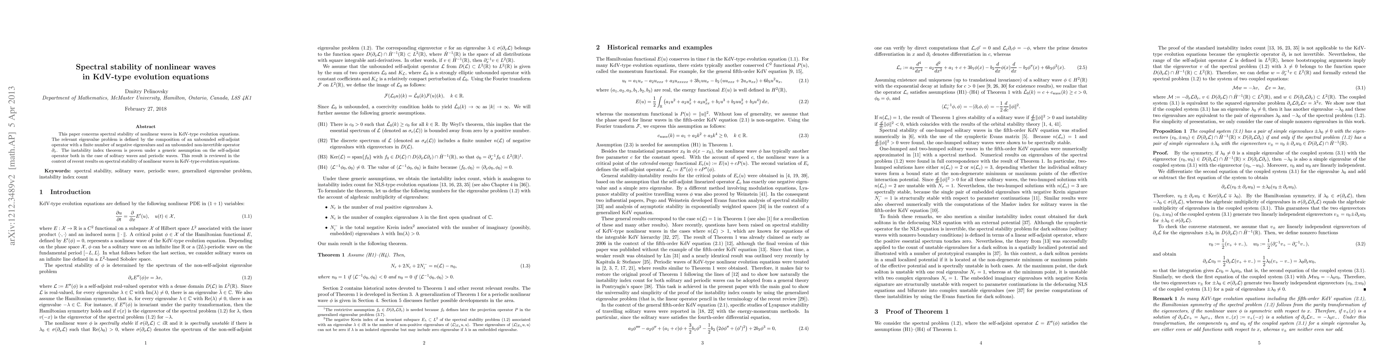 This paper concerns spectral stability of nonlinear waves in KdV-type evolution equations. The relevant eigenvalue problem is defined by the composition of an unbounded self-adjoint operator with a finite number of negative eigenvalues and an unbounded non-invertible symplectic operator $\partial_x$. The instability index theorem is proven under a generic assumption on the self-adjoint operator both in the case of solitary waves and periodic waves. This result is reviewed in the context of other recent results on spectral stability of nonlinear waves in KdV-type evolution equations.